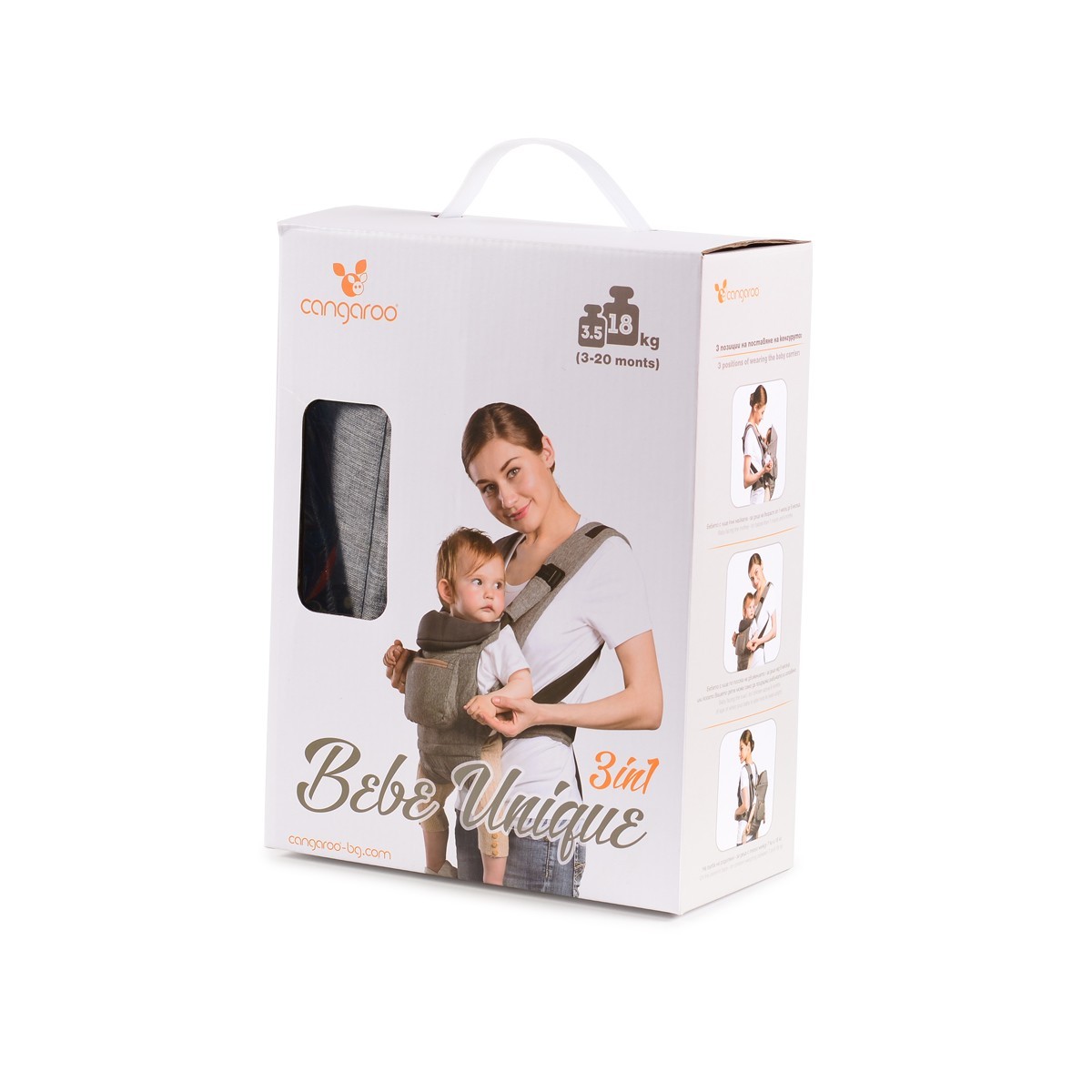 Позиции на носене: Кенгуруто може да се поставя по три начина: