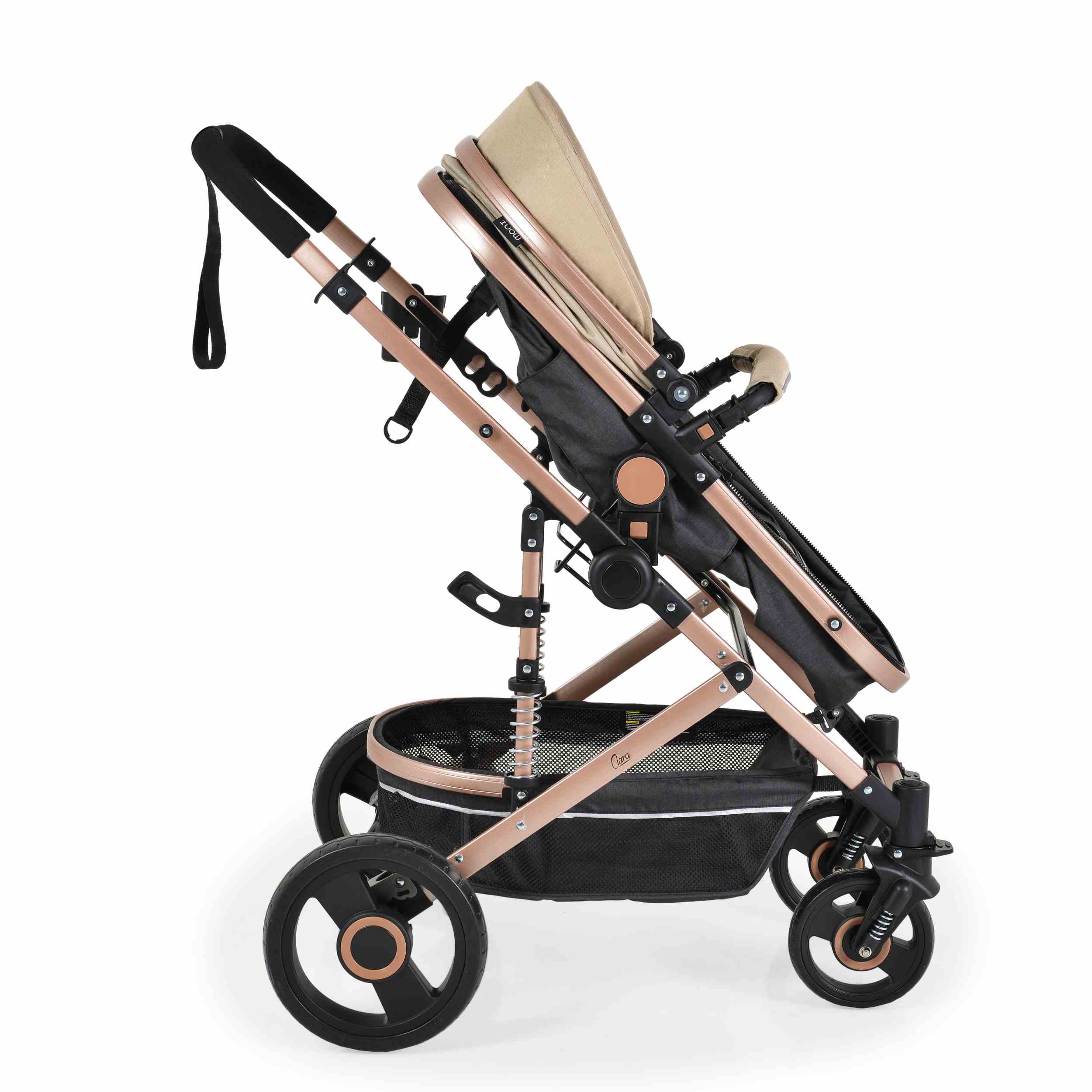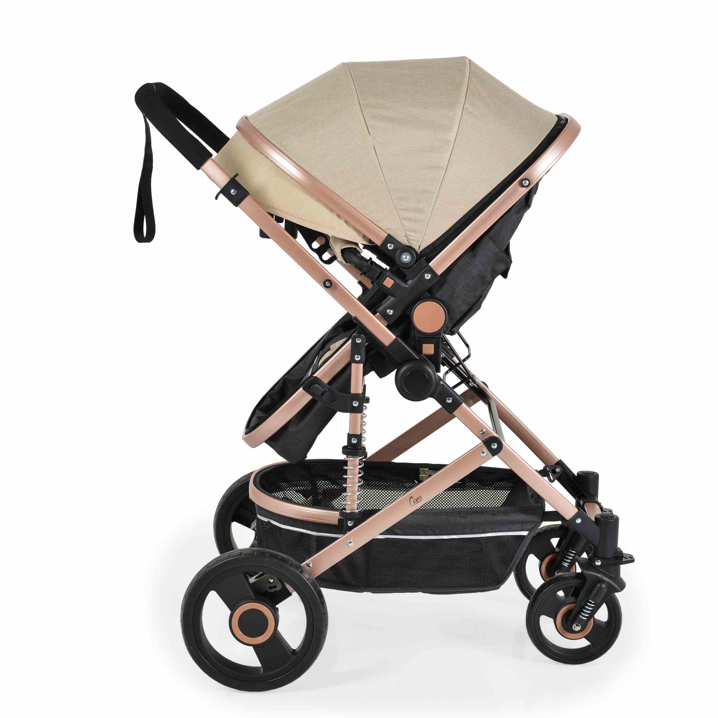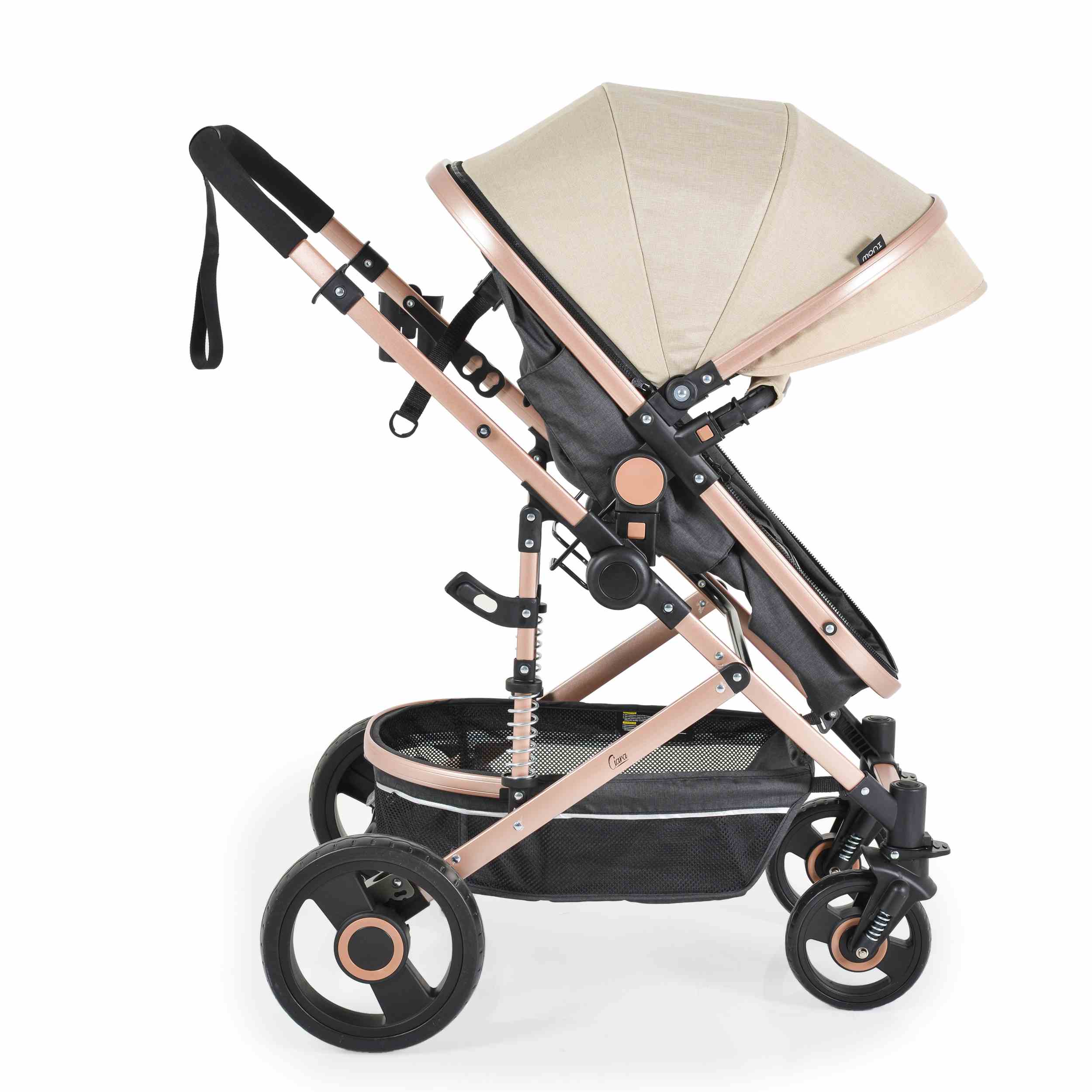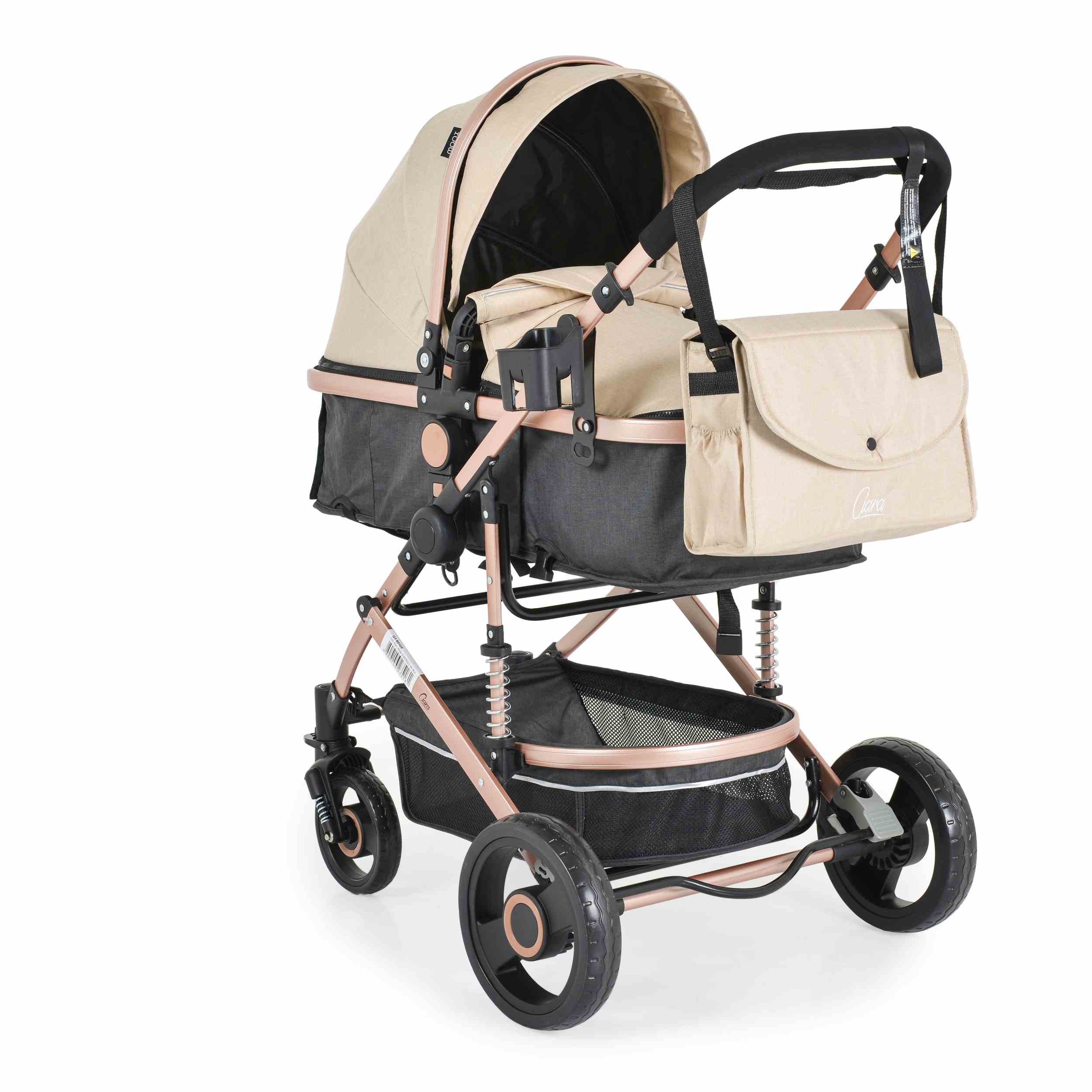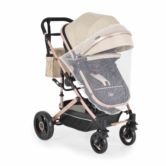 Комбинирана бебешка количка CIARA бежовa с черно е истински бижу за модерните родители и техните малки съкровища. Съчетавайки функционалност и стил, тази бебешка количка е създадена да осигури комфорт и безопасност на вашето бебе, докато добавя елегантен акцент към всекидневните разходки.