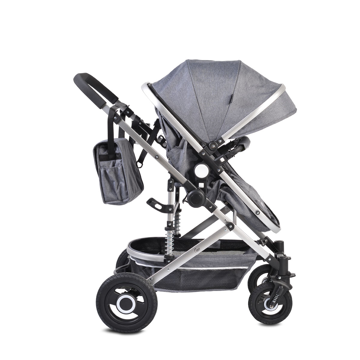 Удобната седалка е регулируема, за да изберете най-подходящата позиция за детенцето, която да му осигури максимален комфорт. Седалката лесно се трансформира в кош за новородено. 5-точковият предпазен колан ще се погрижи за безопасността на мъничето. Големият сенник ще предпази малчугана от слънце, а мрежата против комари – от други дразнители. Количката има и удобен кош за багаж, в който да сложите покупки.