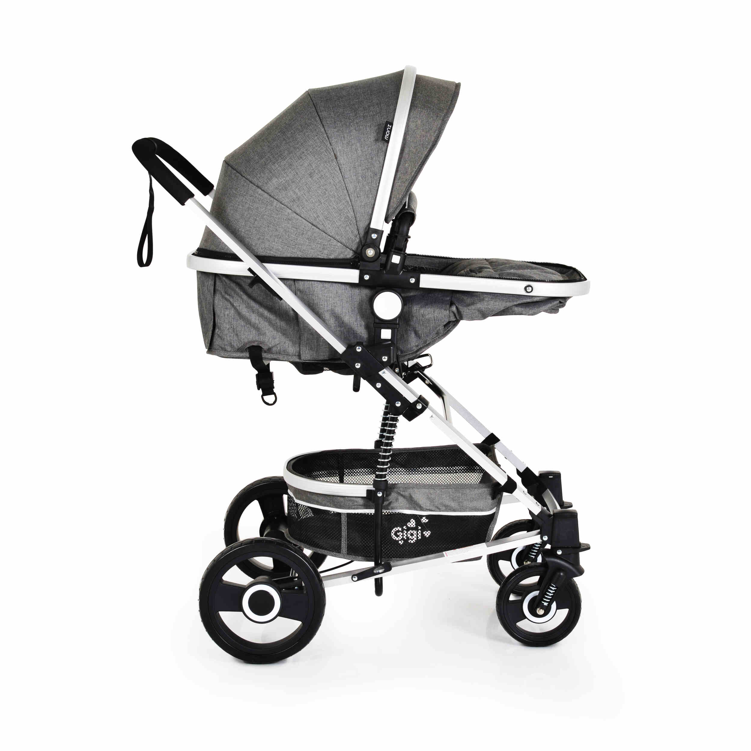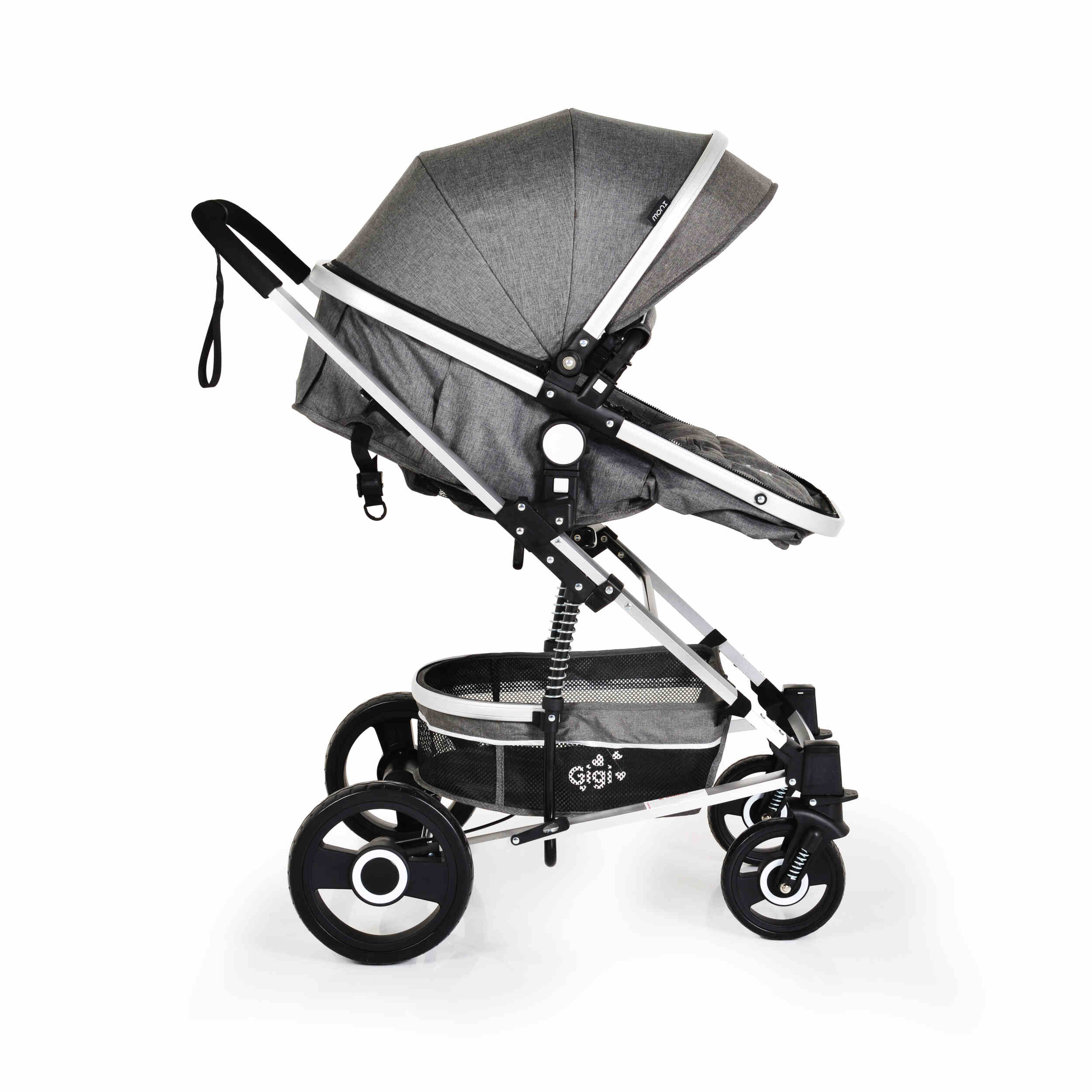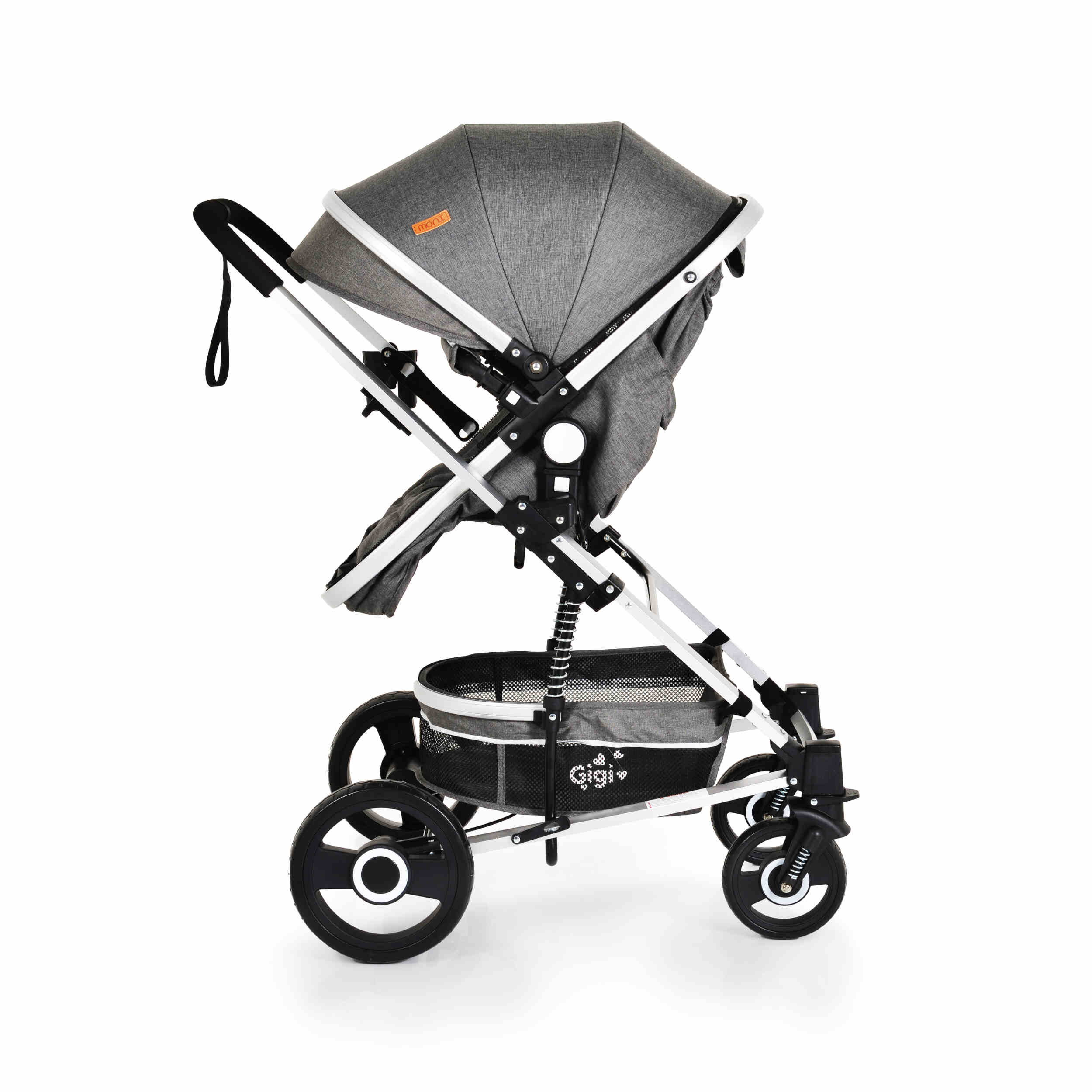 Комбинирана детска количка Gigi тъмносива съчетава стилен дизайн с изключителна функционалност. Тя е подходяща за новородени и деца с тегло до 15 килограма. Впечатлява с регулируема седалка, която лесно може да се трансформира в кош за новородено. Количката е оборудвана с 5-точков предпазен колан с меки подплънки, гарантиращ безопасността на вашето бебе. Топлото покривало предпазва малките крачета от студ. Атрактивният дизайн и всички характеристики правят комбинираната детска количка Gigi чудесен избор за активни семейства, които обичат да прекарват времето си на открито1.