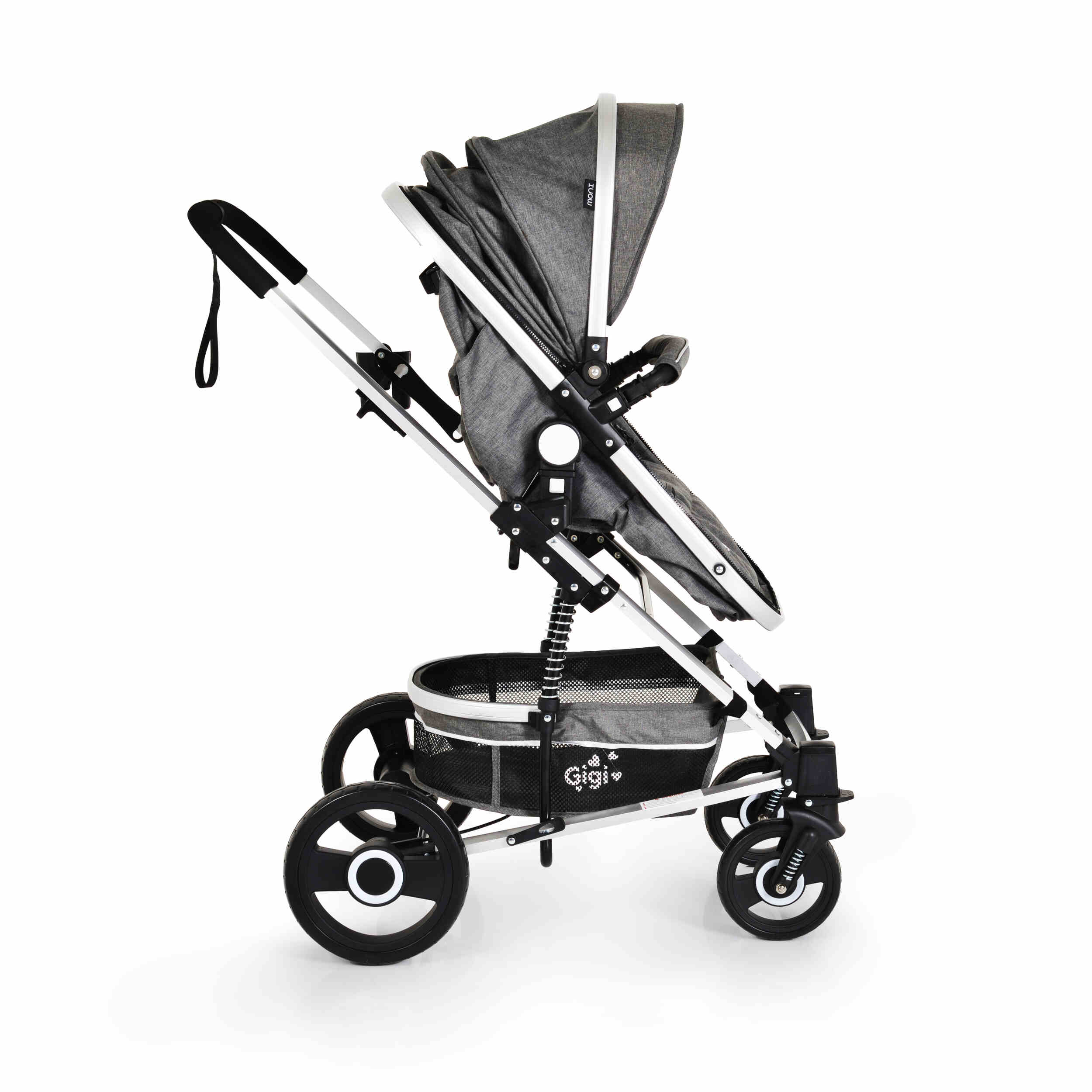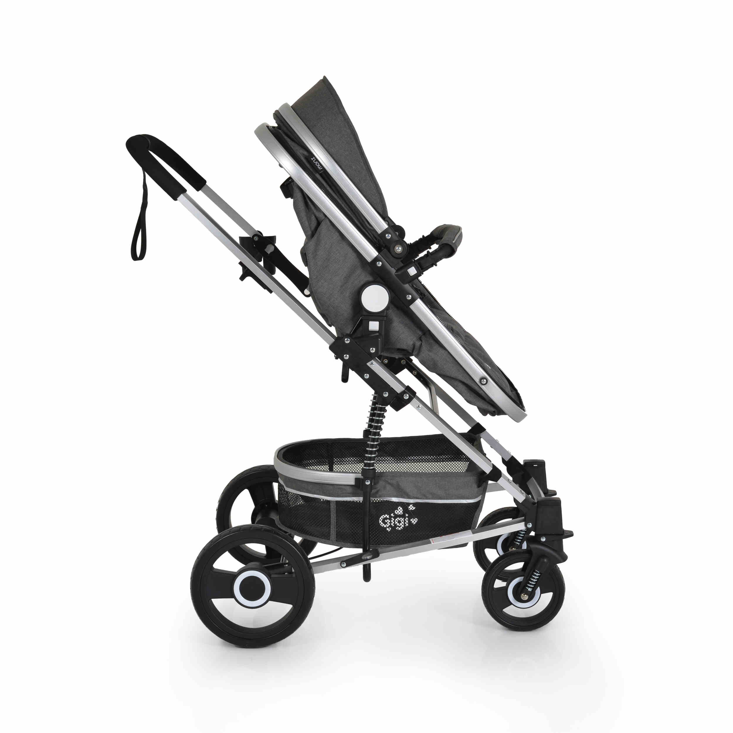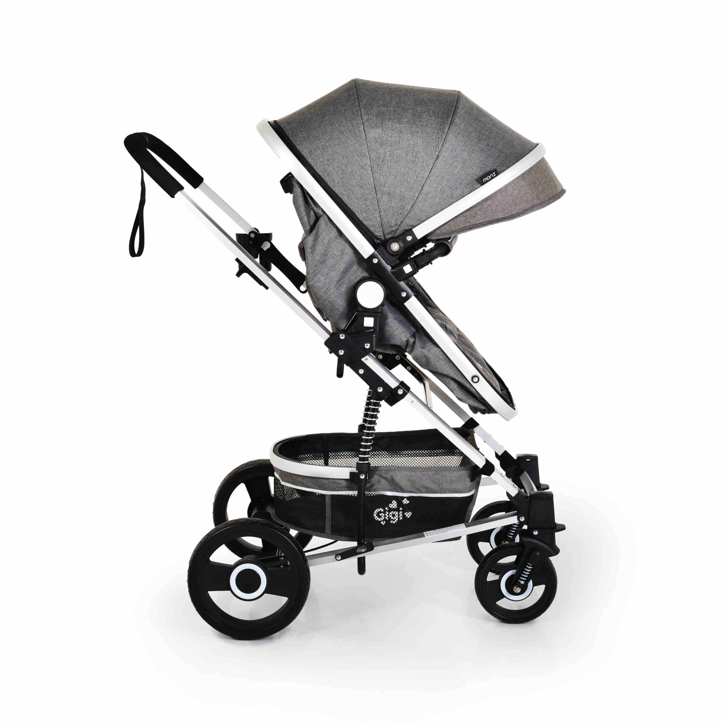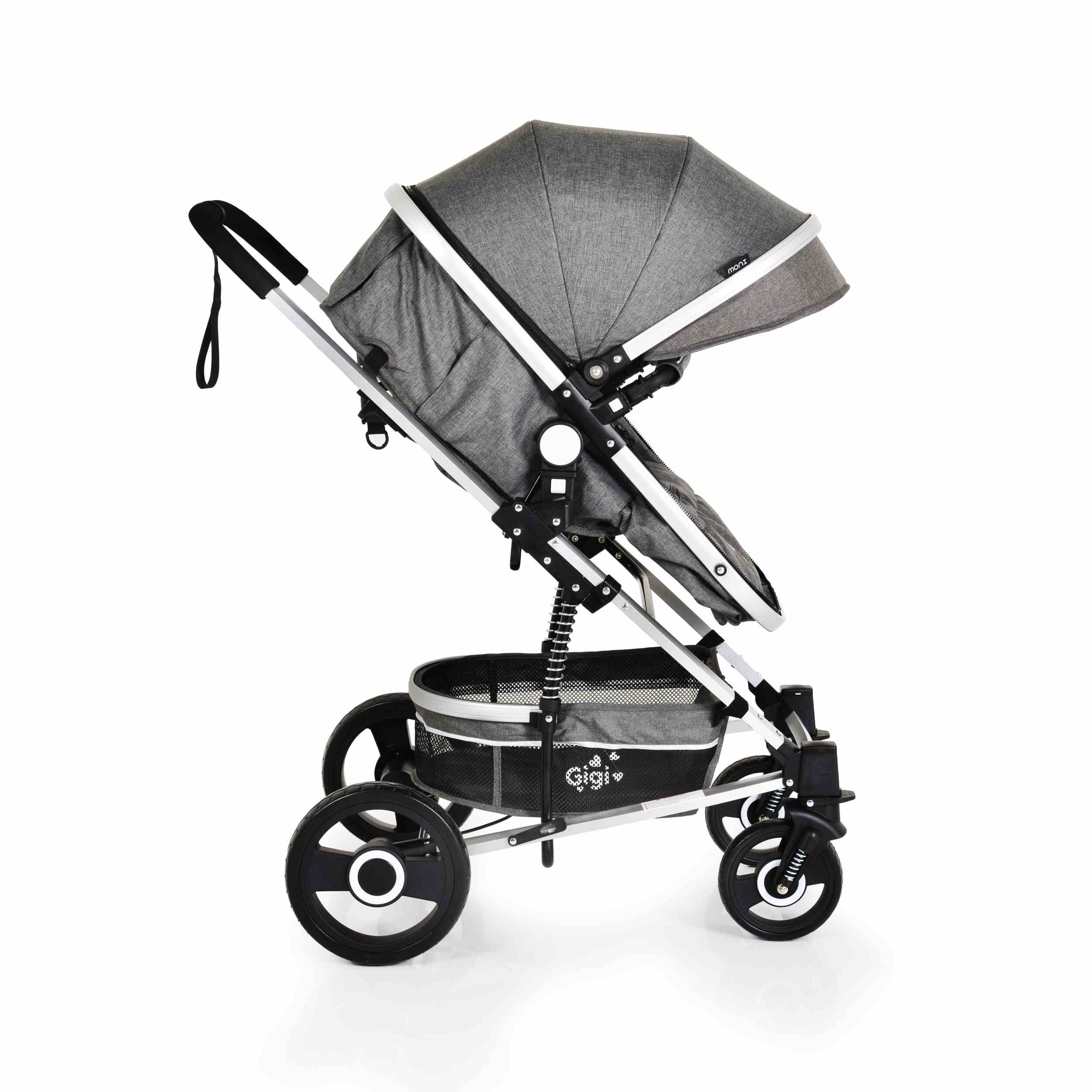 Комбинирана детска количка Gigi тъмносива съчетава стилен дизайн с изключителна функционалност. Тя е подходяща за новородени и деца с тегло до 15 килограма. Впечатлява с регулируема седалка, която лесно може да се трансформира в кош за новородено. Количката е оборудвана с 5-точков предпазен колан с меки подплънки, гарантиращ безопасността на вашето бебе. Топлото покривало предпазва малките крачета от студ. Атрактивният дизайн и всички характеристики правят комбинираната детска количка Gigi чудесен избор за активни семейства, които обичат да прекарват времето си на открито1.