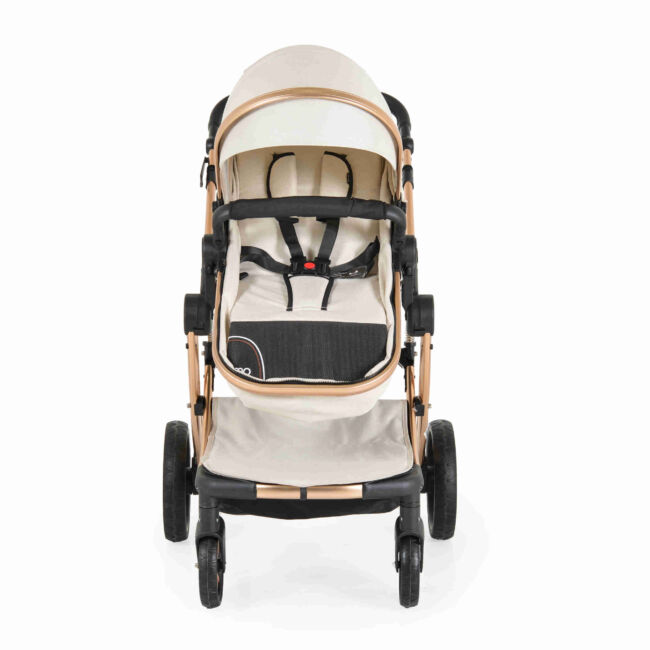 Комфорт и безопасност: Летният и зимният кош осигуряват комфорт през всички сезони, а 5-точковият предпазен колан гарантира безопасността на детето.