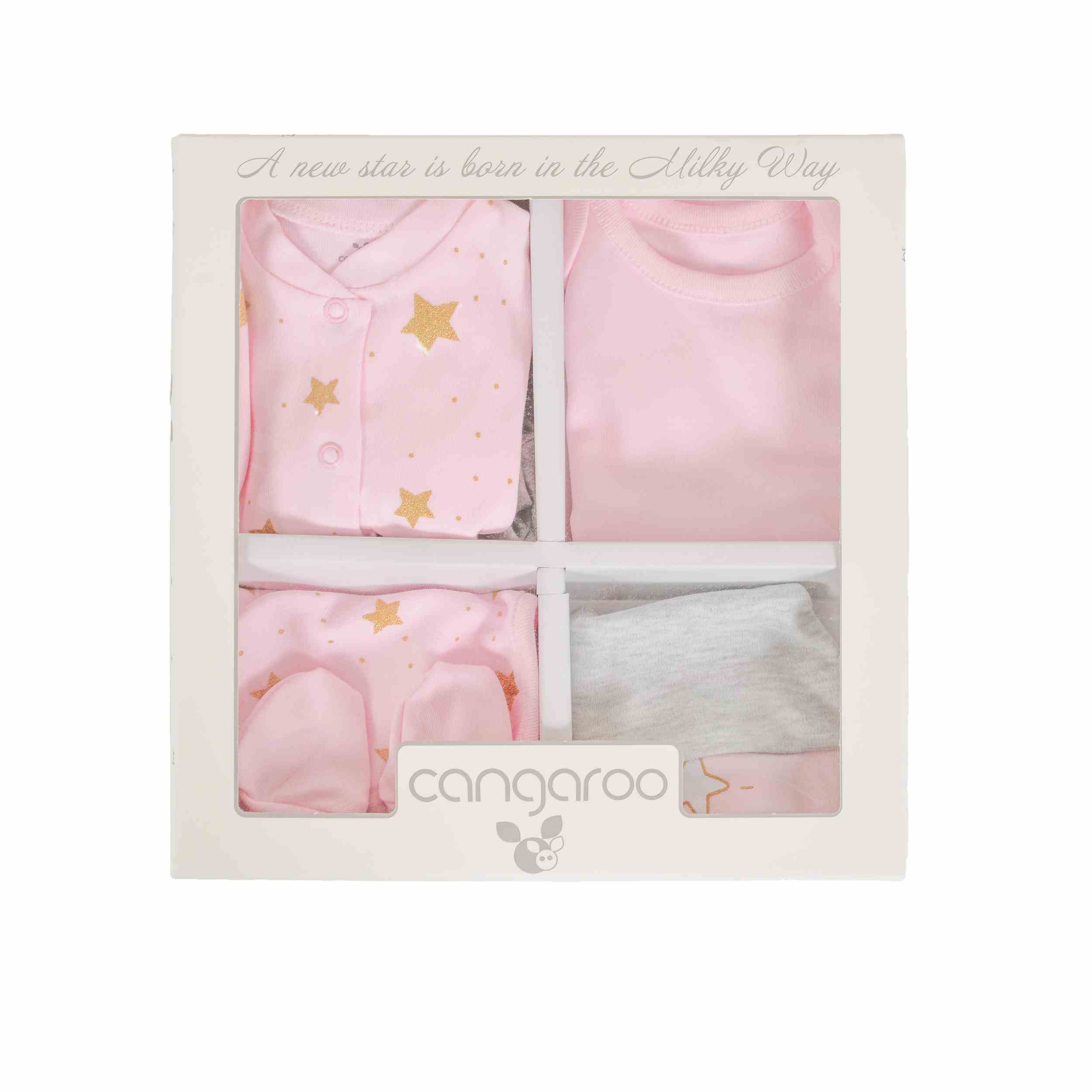 Комплект за изписване MilkyWay розови звезди 6 части от Cangaroo е идеален за новородени бебета и предлага всичко необходимо за първите дни на вашето мъниче. Този комплект за изписване MilkyWay е проектиран с внимание към детайлите и включва шест основни части, които осигуряват комфорт и удобство както за бебето, така и за родителите.