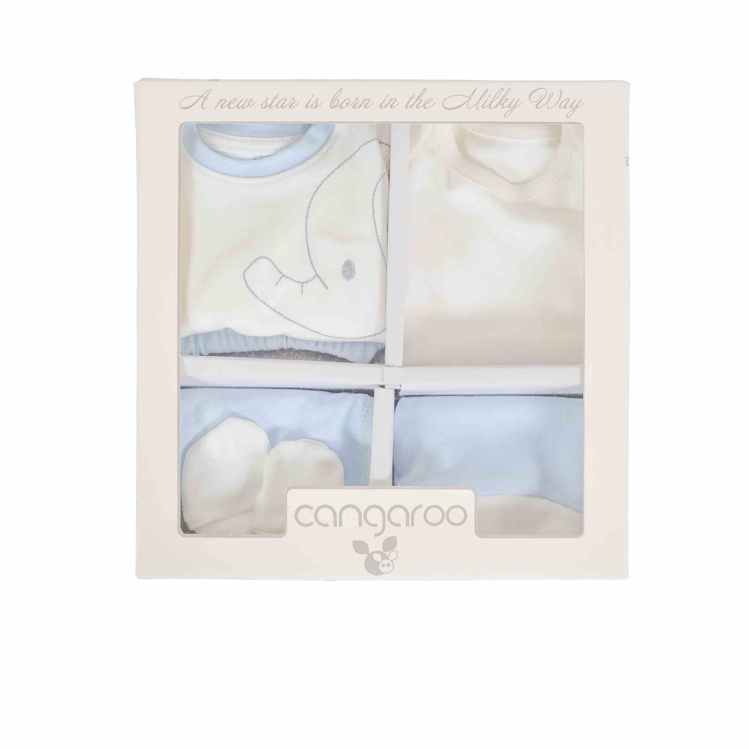 Комплект за изписване MilkyWay син слон 6 части от Cangaroo е идеален за новородени бебета и предлага всичко необходимо за първите дни на вашето мъниче. Този комплект за изписване MilkyWay е проектиран с внимание към детайлите и включва шест основни части, които осигуряват комфорт и удобство както за бебето, така и за родителите.