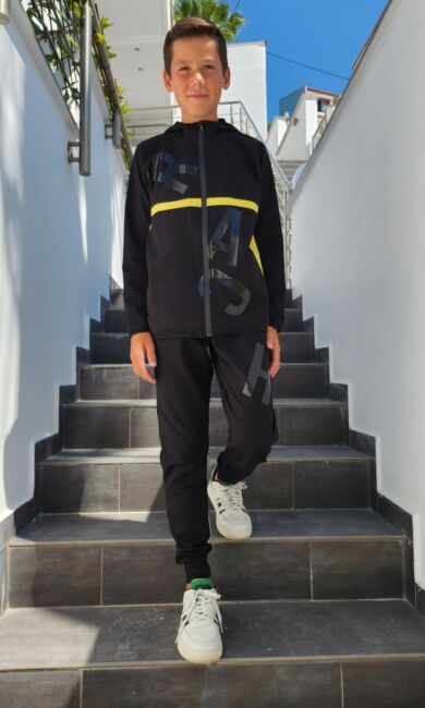 Комплект за момче Rach Черен цвят: изработен с иновативна висококачествена материя. Марка Rach е много добре позната в света на детската мода. Rach предлага уникален и модерен дизайн, с който децата ни изглеждат стилни и също така се чувстват комфортно в дрехите си.