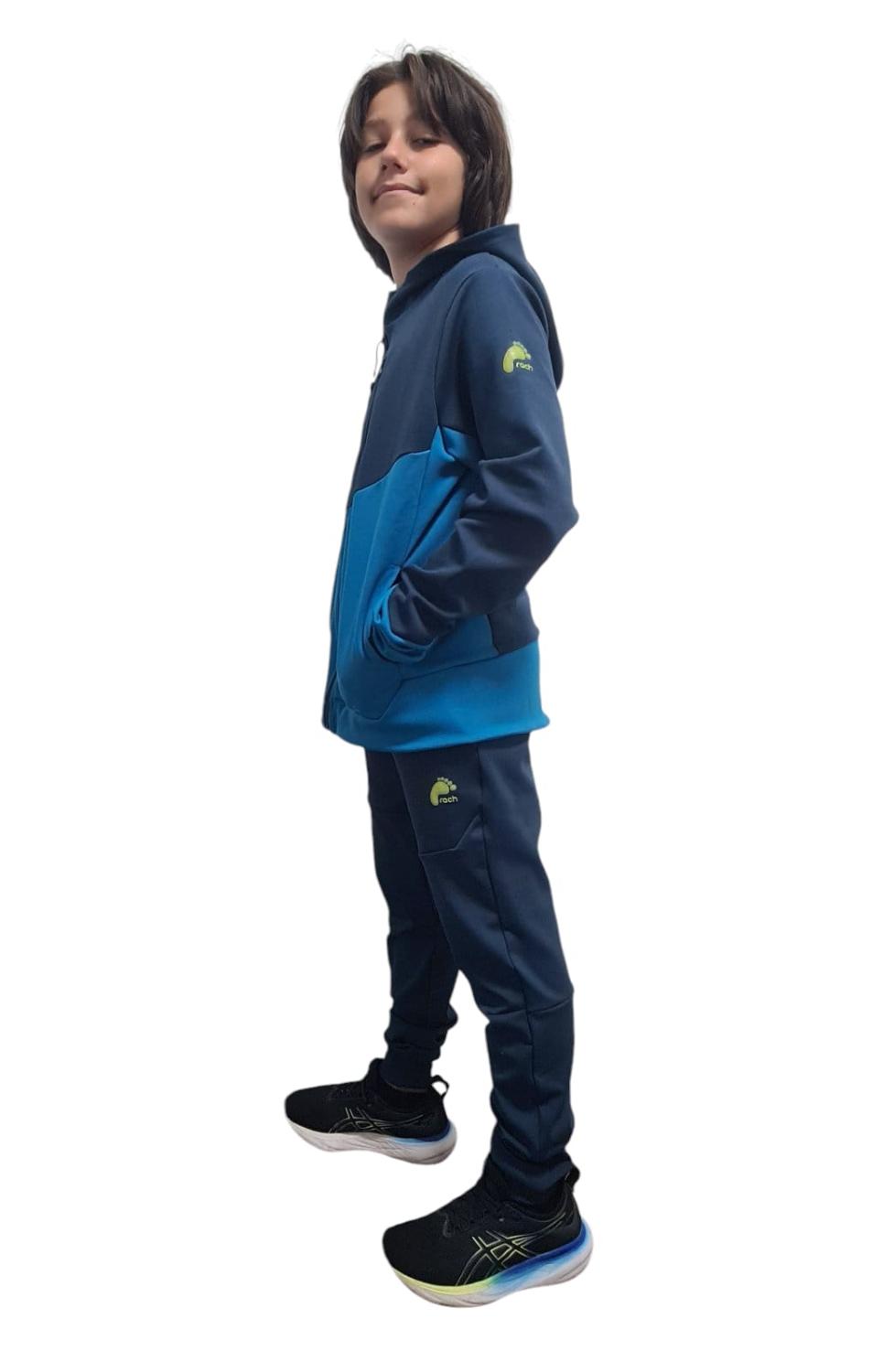 Комплект за момче Rach Double Face Син цвят: изработен с иновативна висококачествена двулицева материя. Марка Rach е много добре позната в света на детската мода. Rach предлага уникален и модерен дизайн, с който децата ни изглеждат стилни и също така се чувстват комфортно в дрехите си.