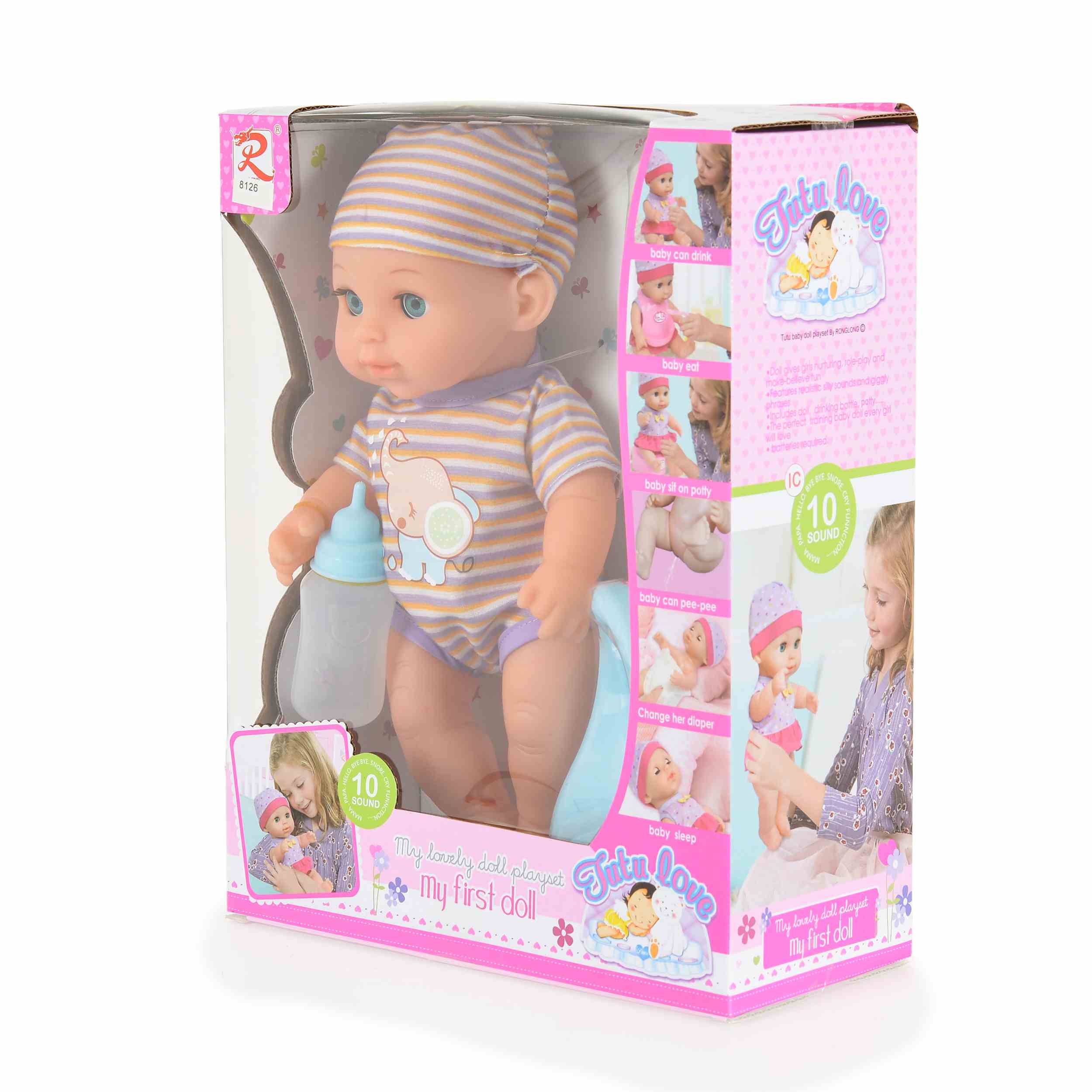 Развитие на умения: Играта с куклата помага на децата да развиват своите фини моторни умения, координация око-ръка и социални умения. Те могат да се научат на основни принципи на грижа за бебето и да създават различни сценарии и истории.