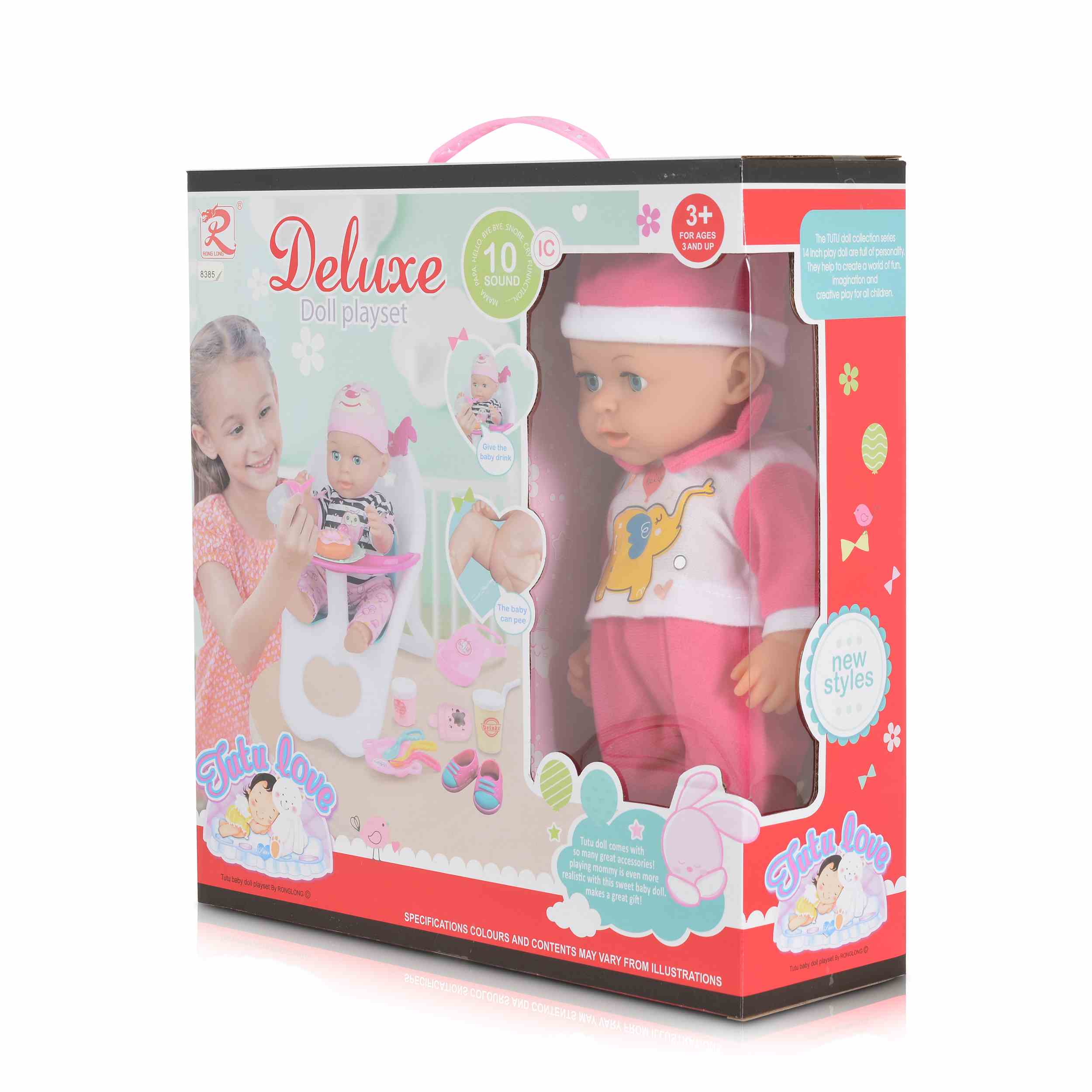 Функции: Куклата може да пие вода от включеното в комплекта шишенце и след това да пишка. Тя също така е музикална, което добавя допълнителен елемент на забавление.