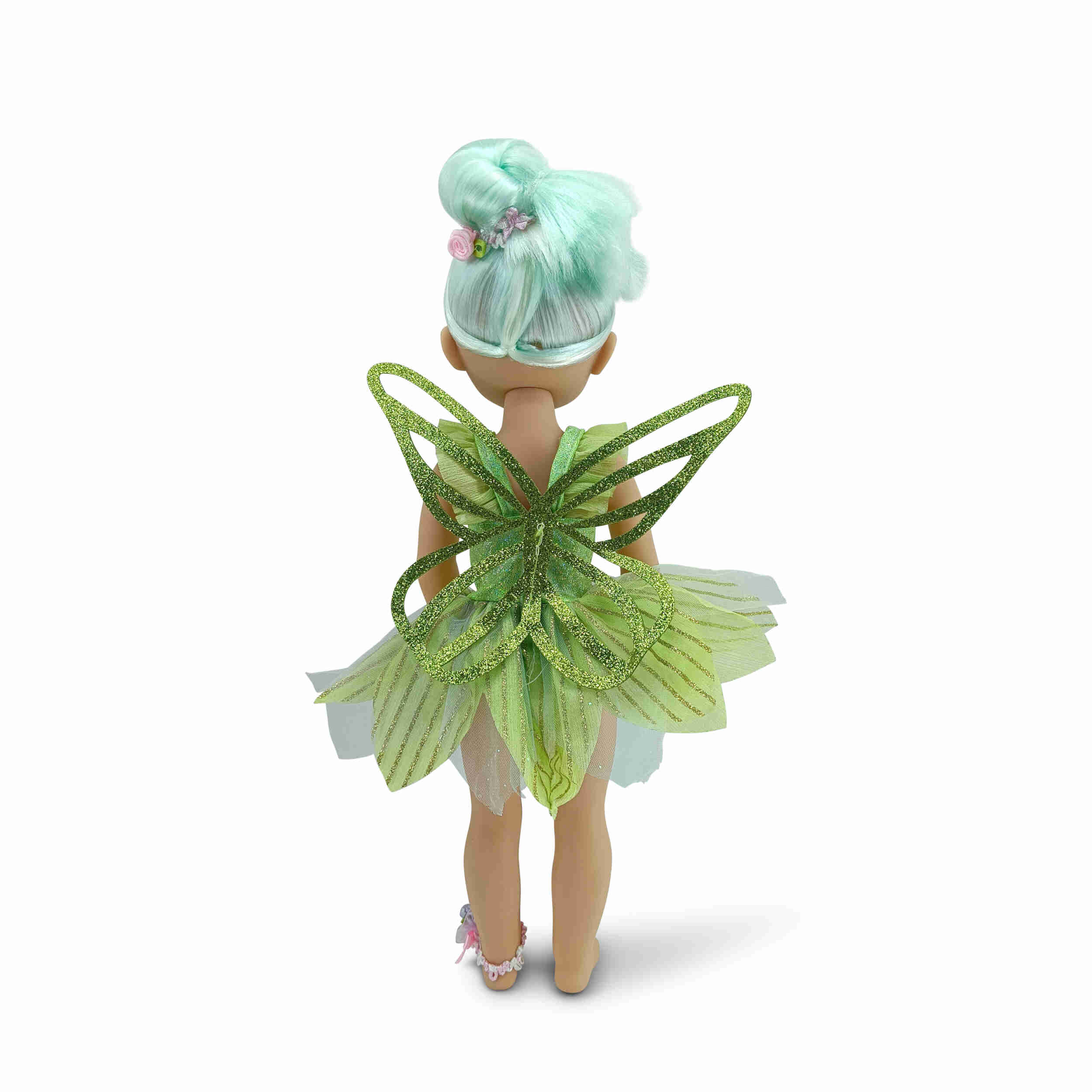 - Дизайн и цветове: Куклата е облечена в блестяща зелена рокля, която подчертава нейната елегантност и приказен стил. Косата ѝ е дълга и променя цвета си при излагане на слънчева светлина, добавяйки елемент на изненада и вълнение.