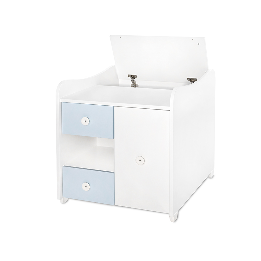 Многофункционален шкаф: Включва шкаф с плот за повиване, ракла с капак и газов амортисьор, две чекмеджета и шкафче с вътрешен рафт.
