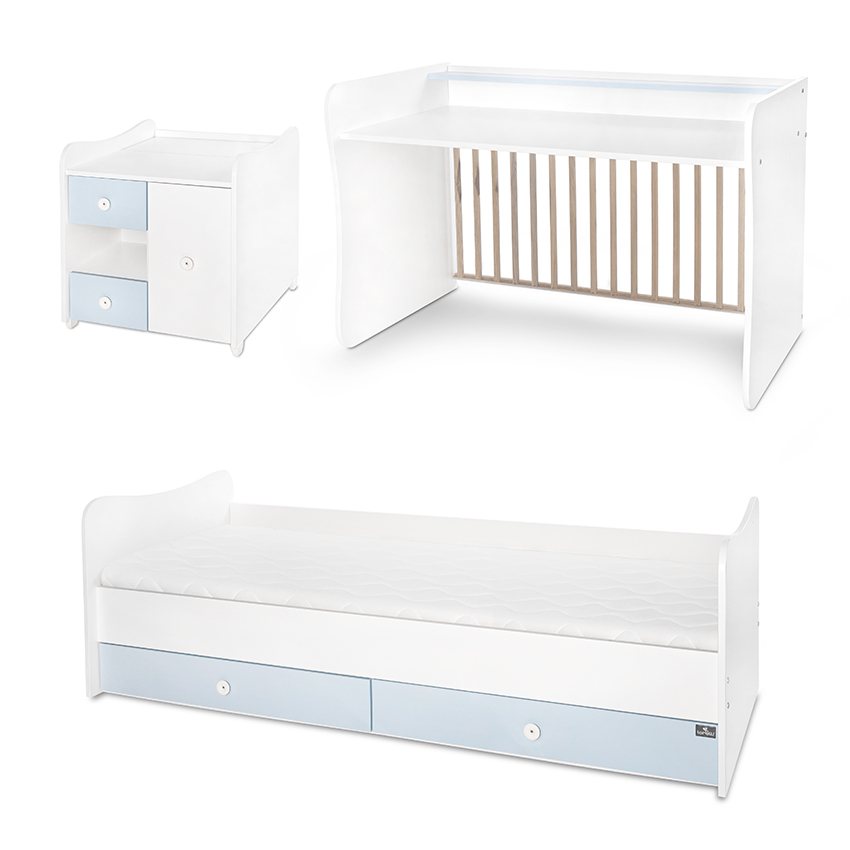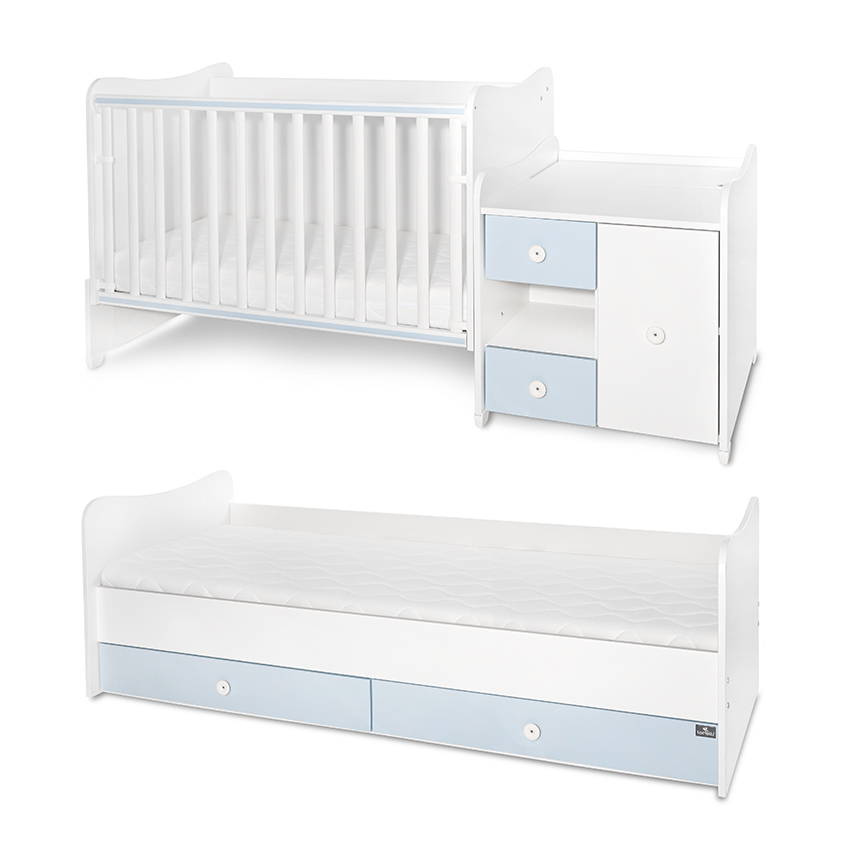 ЛЕГЛО БЯЛО и BABY BLUE MiniMAX NEW 190/72 е трансформиращо се детско легло, което предлага практичност и дълготрайност. То е проектирано да отговаря на нуждите на вашето дете от раждането до юношеска възраст.