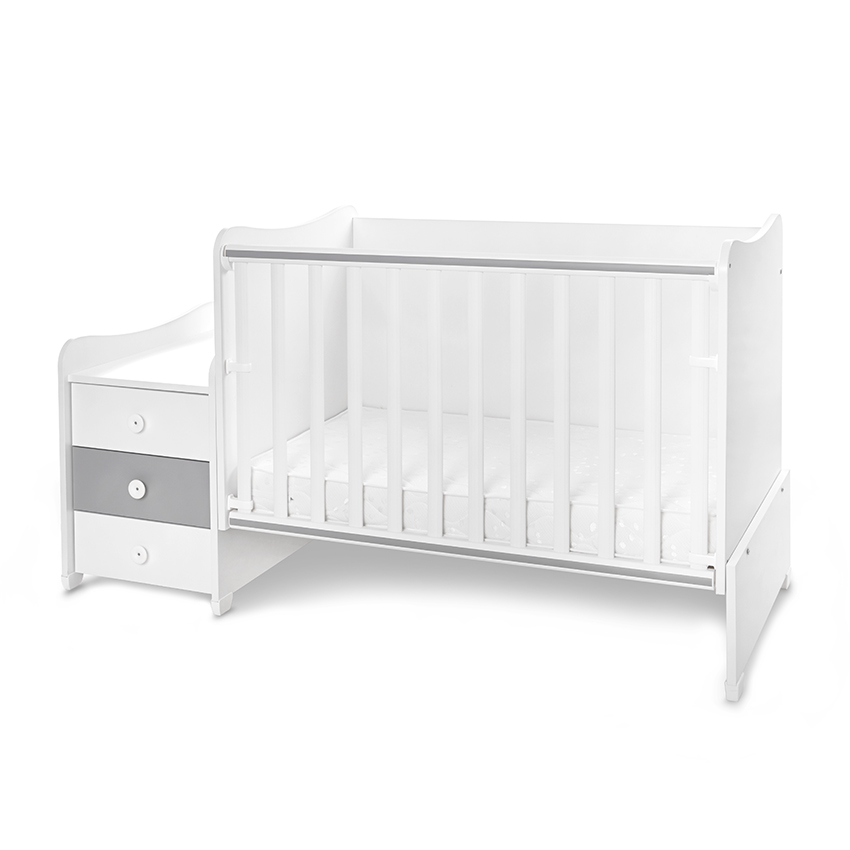ЛЕГЛО БЯЛО и STONE GREY 3BOX MAXI PLUS NEW 70/160 е многофункционален и адаптивен продукт. Той е проектиран да отговори на нуждите на растящото дете от раждането до юношеска възраст. Изработено от висококачествен 18 mm ламиниран ПДЧ материал и отговаря на всички европейски стандарти за безопасност.