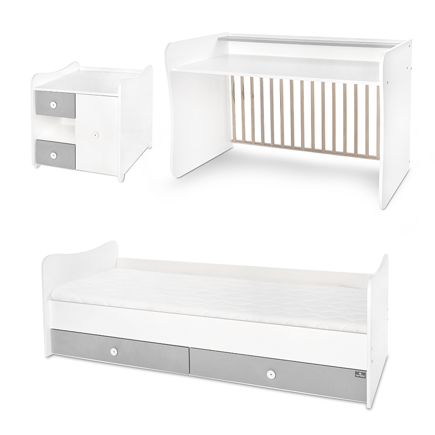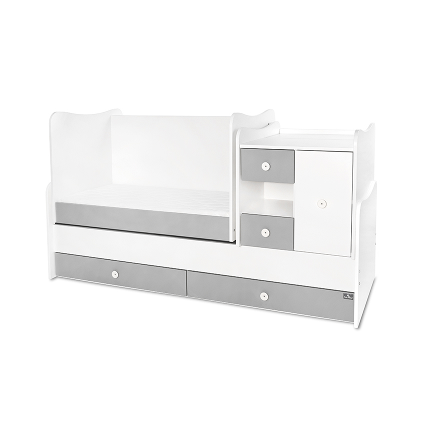 ЛЕГЛО БЯЛО и STONE GREY MiniMAX NEW 190/72 е трансформиращо се детско легло, което предлага практичност и дълготрайност. То е проектирано да отговаря на нуждите на вашето дете от раждането до юношеска възраст.