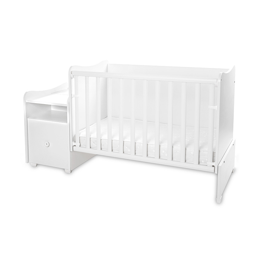 ЛЕГЛО БЯЛО 3box TREND PLUS NEW 70/160 см и цвят бяло е многофункционално детско легло, което се адаптира към растежа на вашето дете. То е произведено от 18мм ламинирано ПДЧ с високо качество и отговаря на всички европейски стандарти за безопасност.