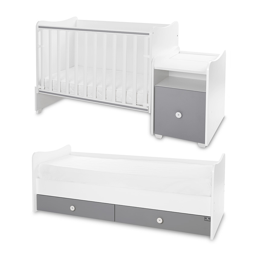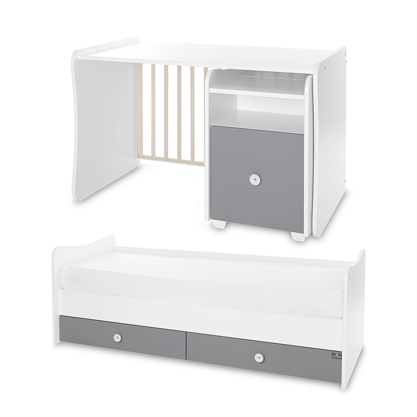 ЛЕГЛО STONE GREY 3box TREND PLUS 70/160 см и цвят бяло е многофункционално детско легло, което се адаптира към растежа на вашето дете. То е произведено от 18мм ламинирано ПДЧ с високо качество и отговаря на всички европейски стандарти за безопасност.