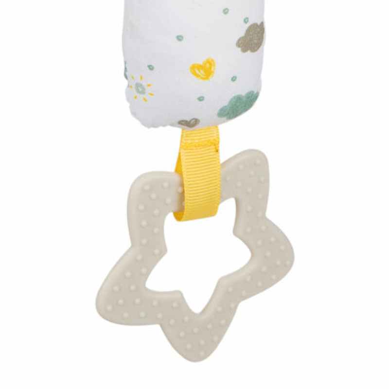 Чесалка: Играчката има гъвкава чесалка, която е идеална за облекчаване на дискомфорта при никнене на зъбки. Чесалката е изработена от безопасни материали и е лесна за хващане от малките ръчички.