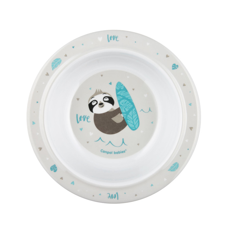 Меламинова купа EXOTIC ANIMALS 270мл Сива с вакуумен ринг от Canpol Babies е идеален избор за малките деца, които започват да се хранят самостоятелно.