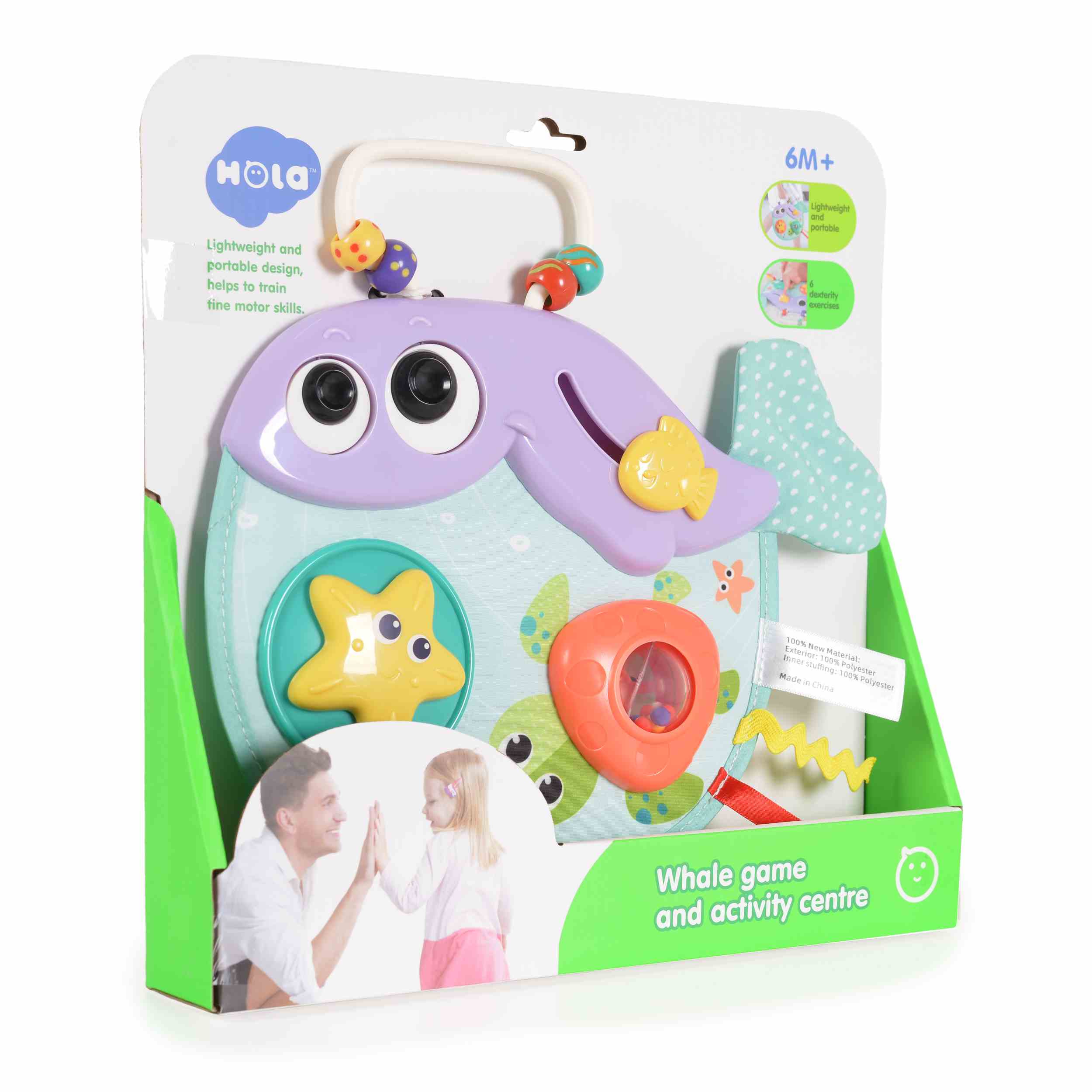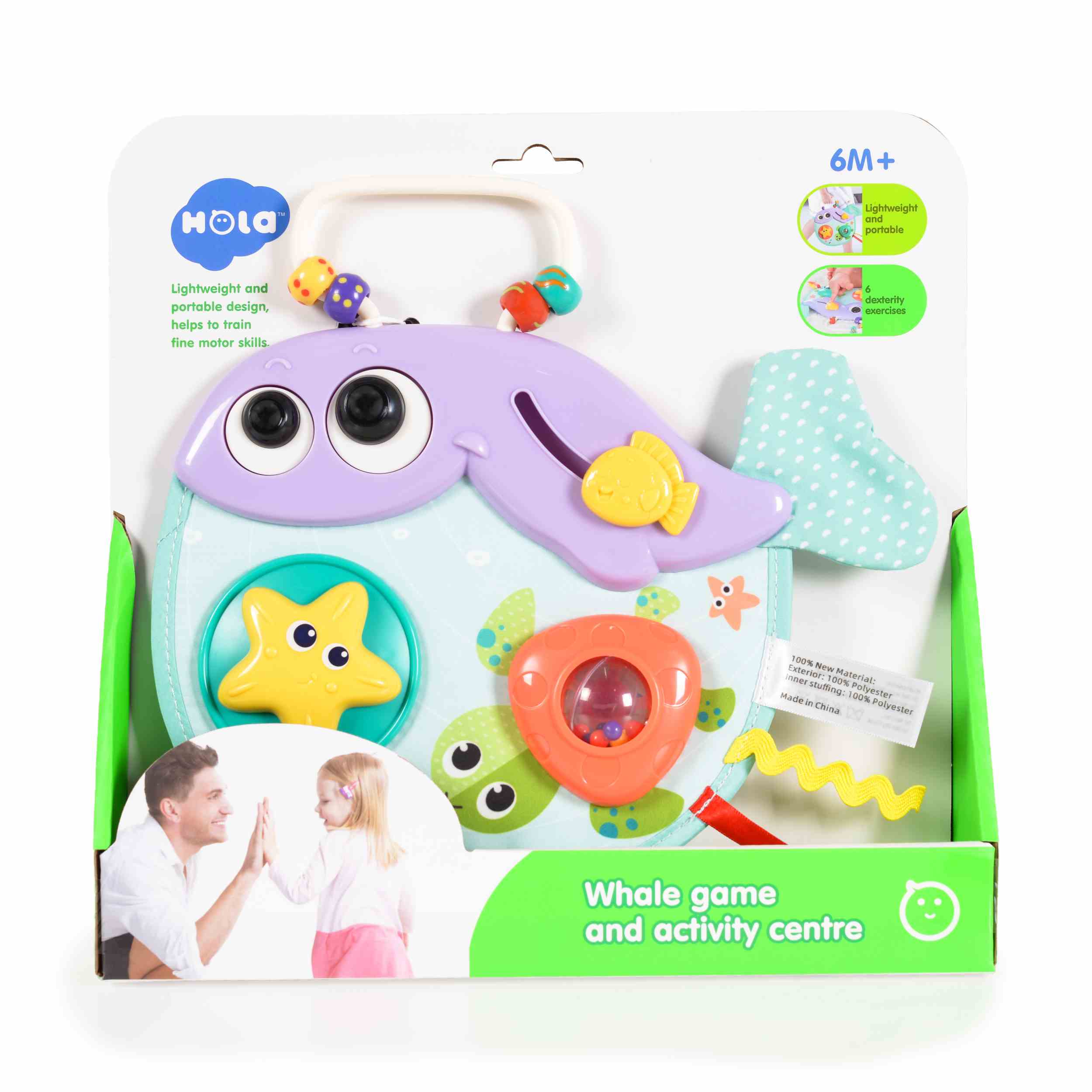 Мини активен център Веселият кит E268 от марката Hola е забавна и образователна играчка, предназначена за най-малките деца. Този активен център за бебе Веселият кит предлага множество функции, които стимулират сетивата и развиват моторните умения на бебето.
