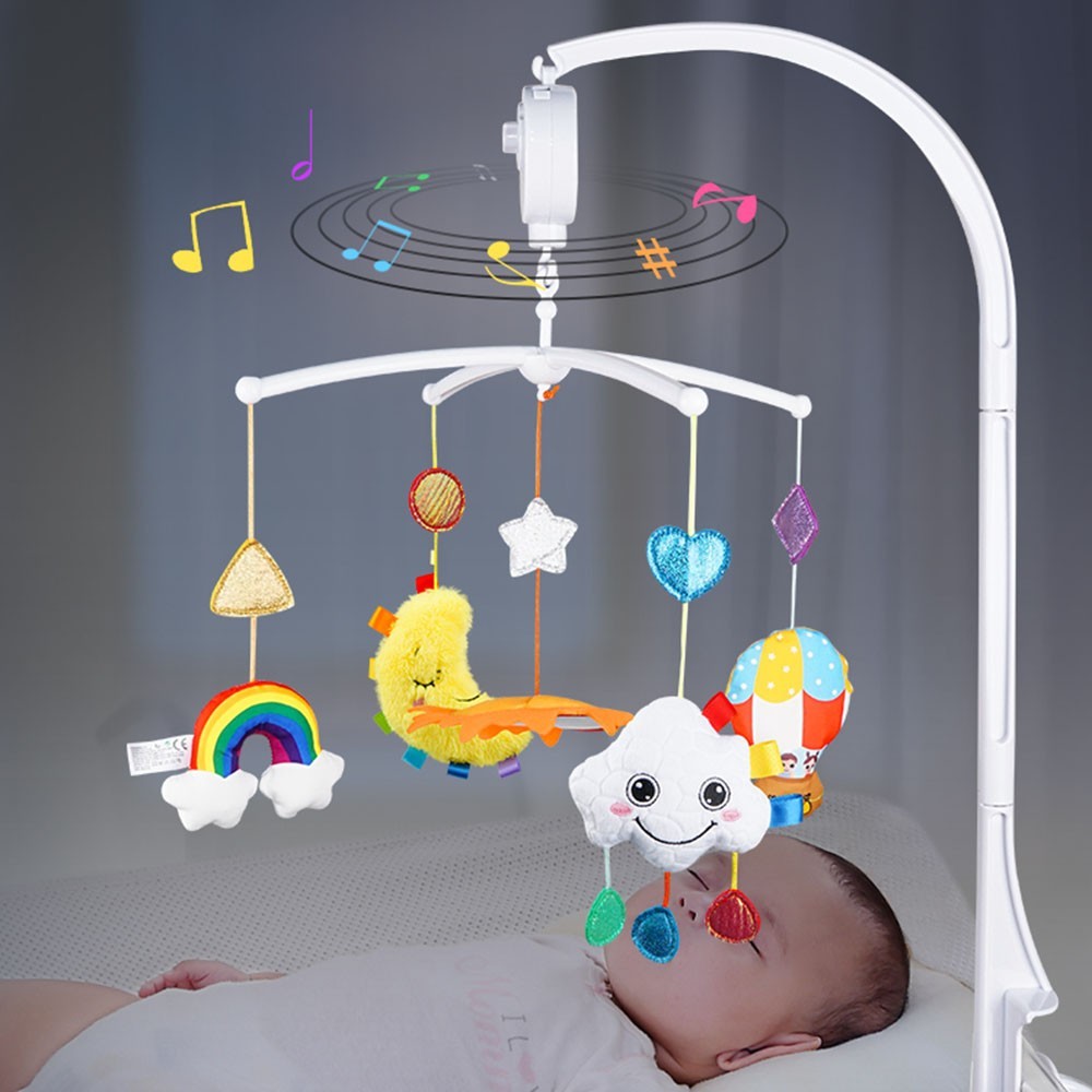 Въртящи се играчки: Цветните и меки играчки се въртят, привличайки вниманието на бебето и стимулирайки визуалното му развитие.