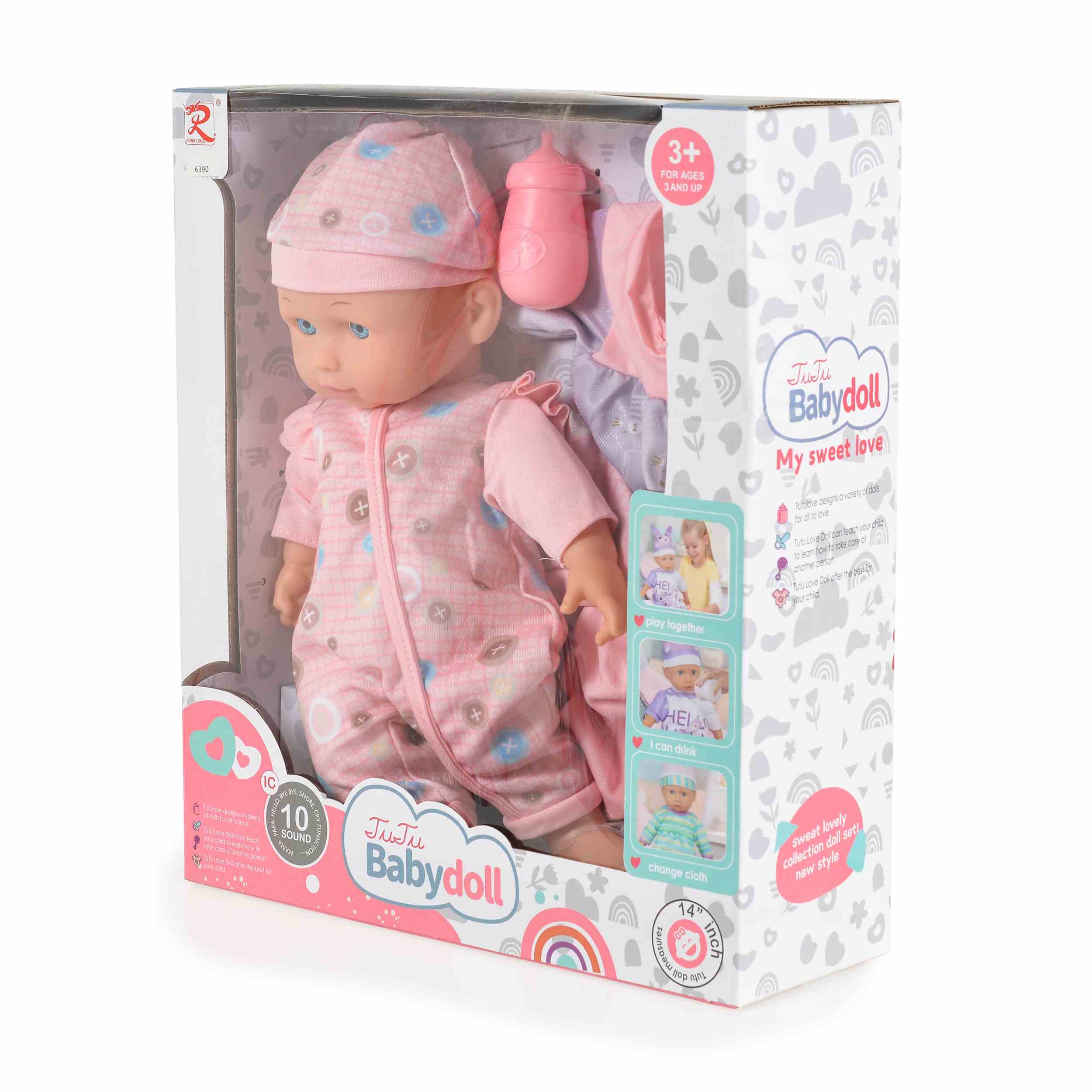 Музикална кукла 36см 6390 с меко тяло и комплект дрехи е идеалният избор за малките момичета, които обичат да играят ролеви игри и да се грижат за своите кукли.