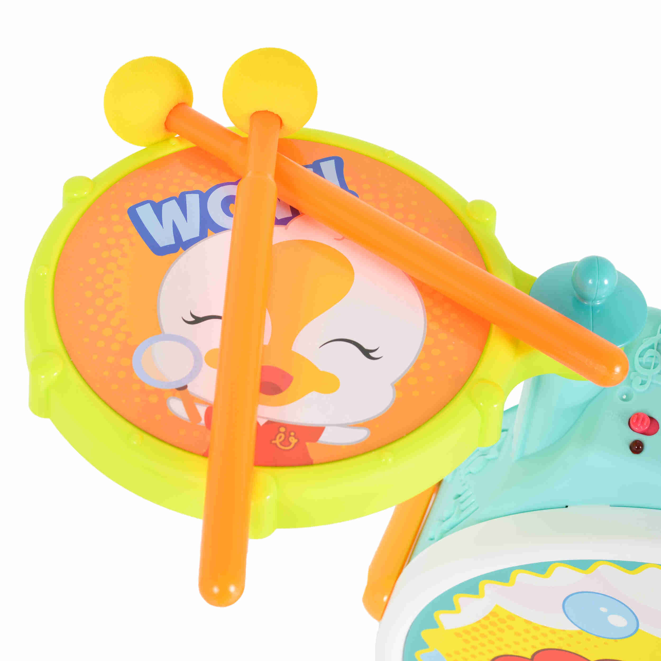 Два режима на работа: Барабаните могат да превключват между два режима – мелодии и барабани, което позволява на детето да свири заедно с мелодиите или без тях.