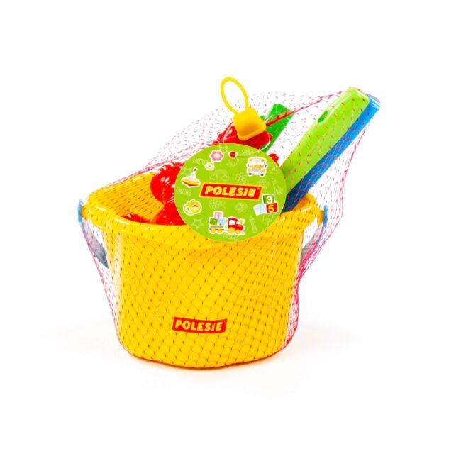 - Съдържание: Комплектът включва 1 бр. кофичка, 1 бр. гребло, 1 бр. лопатка и 2 бр. формички за пясък.