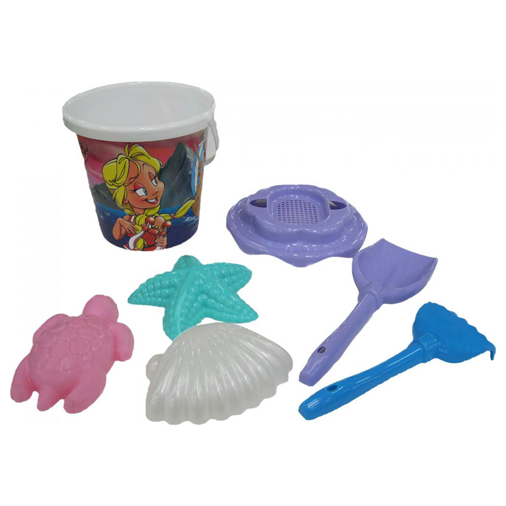 - Съдържание на комплекта: Комплектът играчка включва 7 елемента – декорирана плажна кофичка, сито, лопатка, гребло и три пясъчни формички (мида, костенурка и морска звезда). Тези аксесоари позволяват на децата да създават различни фигури и конструкции от пясък, като стимулират тяхното творческо мислене.