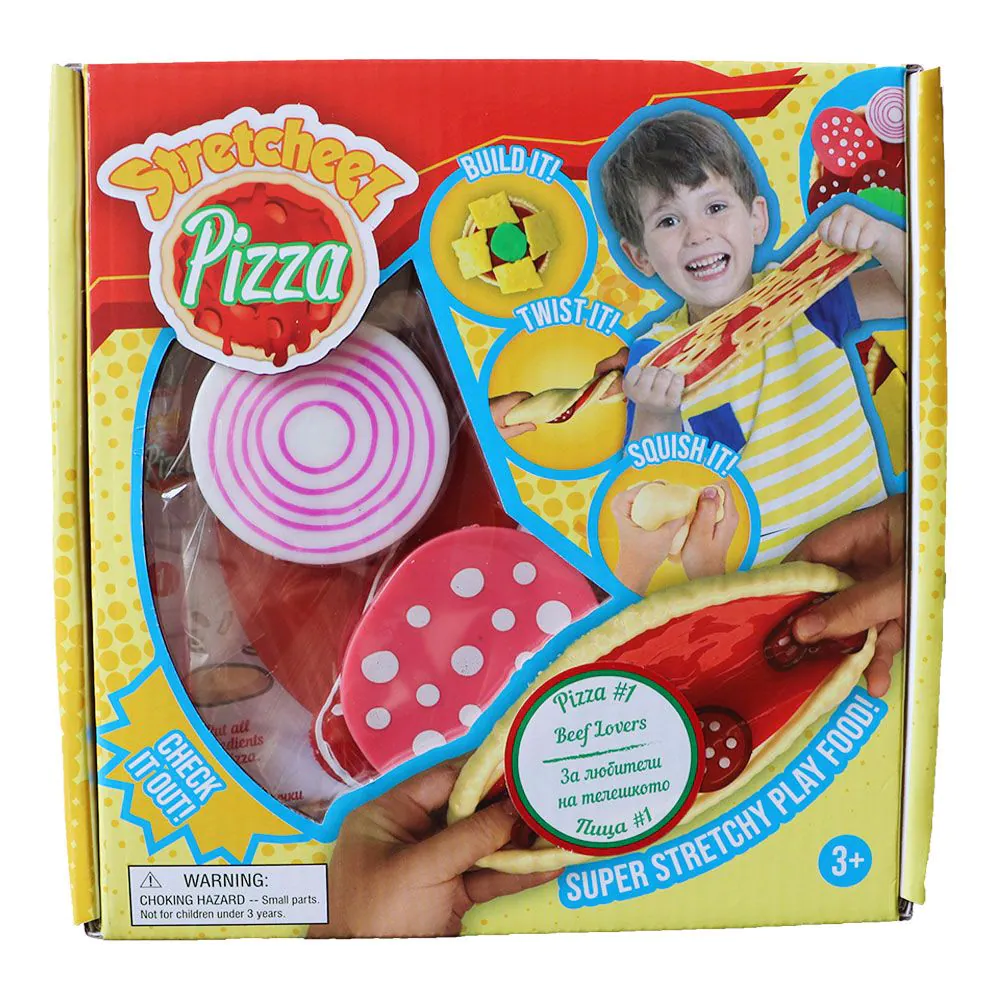 Разтеглива играчка Stretcheez Pizza е забавна, цветна и много ще се хареса на вашето дете. С нея то ще тренира фината си моторика и много ще се забавлява. В кутията има 5 продукта за приготвяне на пица.