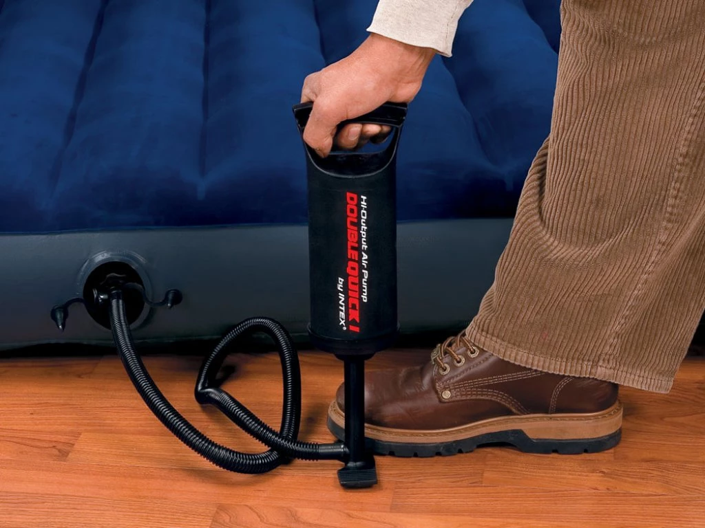 Ръчна помпа INTEX Double Quick I. Нямате електрически контакт? Не се притеснявайте! Ръчната помпа може да свърши работата. Тази помпа надува като изпомпва въздух както при движение нагоре, така и надолу. Включва маркуч и 3 дюзи.