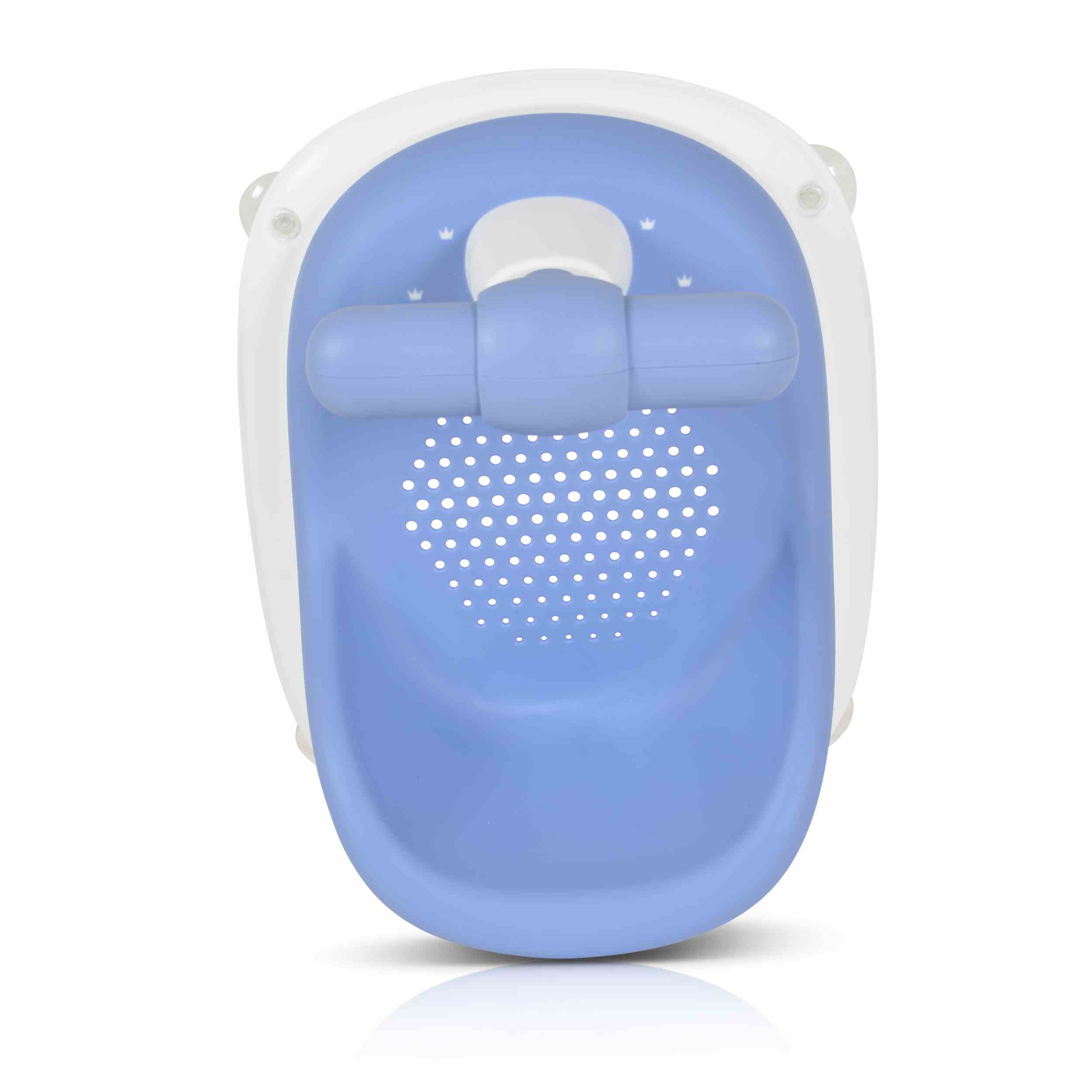 Комфорт и безопасност: Меката и нежна материя на седалката осигурява комфорт и безопасност на бебето по време на къпане. Ергономичната форма поддържа правилната позиция на тялото и предотвратява плъзгане.