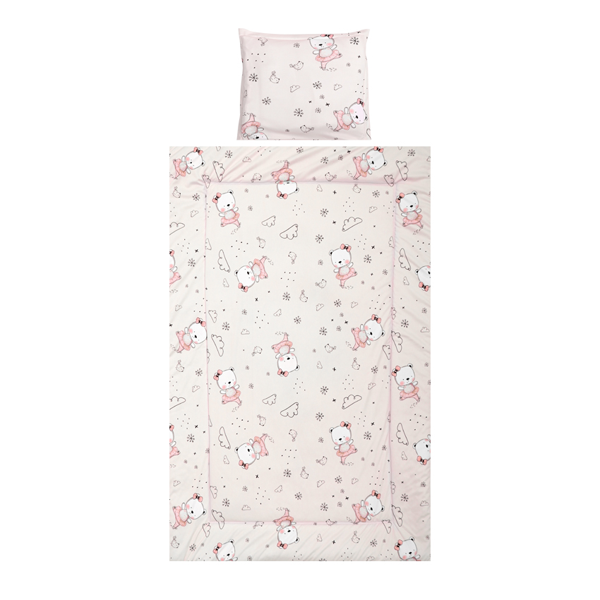 СЕТ COSY РОЗОВО МЕЧЕ БАЛЕРИНА 3 ЧАСТИ РАНФОРС е висококачествен комплект спално бельо, предназначен за бебешки и детски легла. Този детски спален комплект е създаден с мисъл за комфорта и безопасността на вашето дете, като същевременно предлага стилен и естетически привлекателен дизайн.