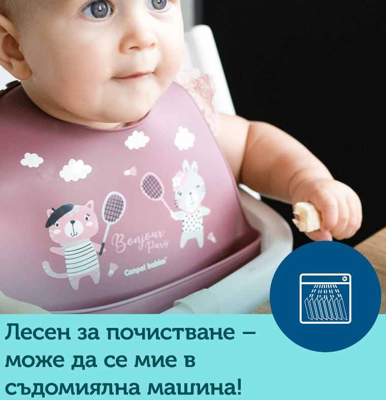 Силиконовият лигавник с джоб BONJOUR PARIS е практичен и удобен аксесоар, който ще ви помогне да поддържате чистотата на вашето бебе по време на хранене.