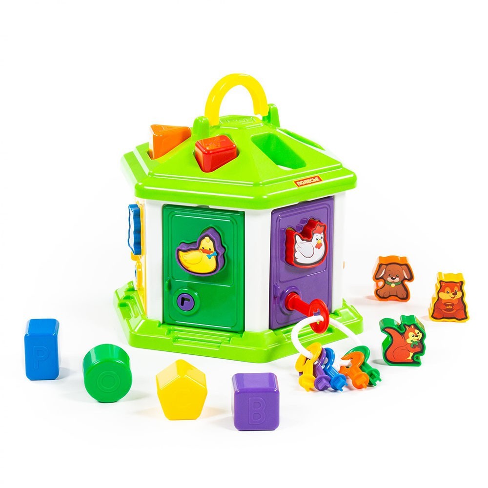 Тази сортер къща е проектирана да изглежда като малка къщичка с различни отвори във формата на геометрични фигури и животни. В комплекта са включени различни форми, които децата трябва да поставят в съответстващите отвори на къщата. Играчката е оцветена в ярки и привлекателни цветове, които веднага привличат вниманието на малчуганите. Играта със сортер къщата помага на децата да развиват своите фини моторни умения, координация око-ръка и разпознаване на форми и цветове.