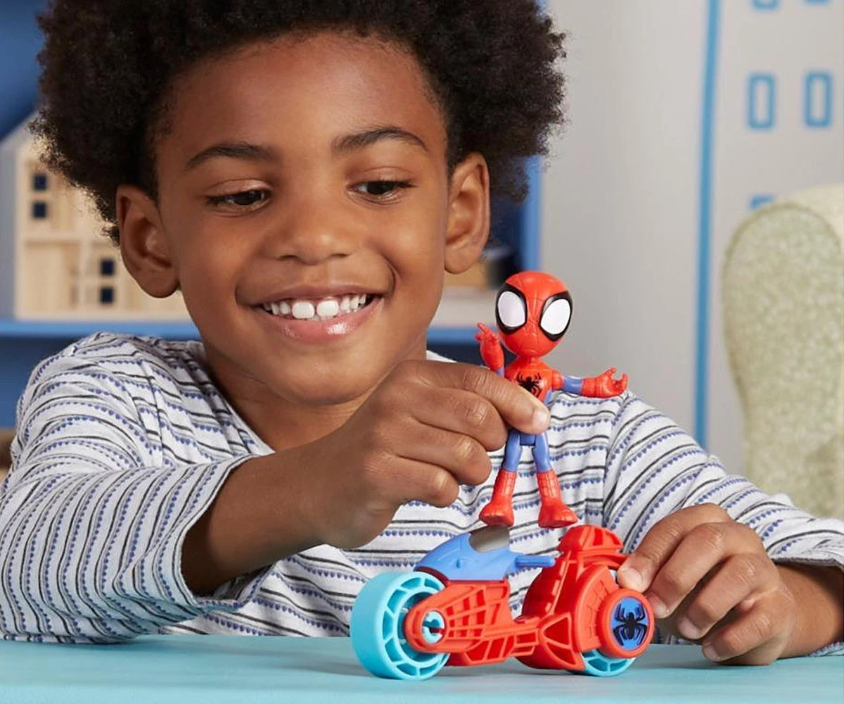 Спайди и приятели с мотоциклет Спайдърмен Spidey е част от уникалната колекция Hasbro Spidey Amazing Friends. Този комплект включва фигурка на Спайдърмен (Spidey) и мотоциклет.