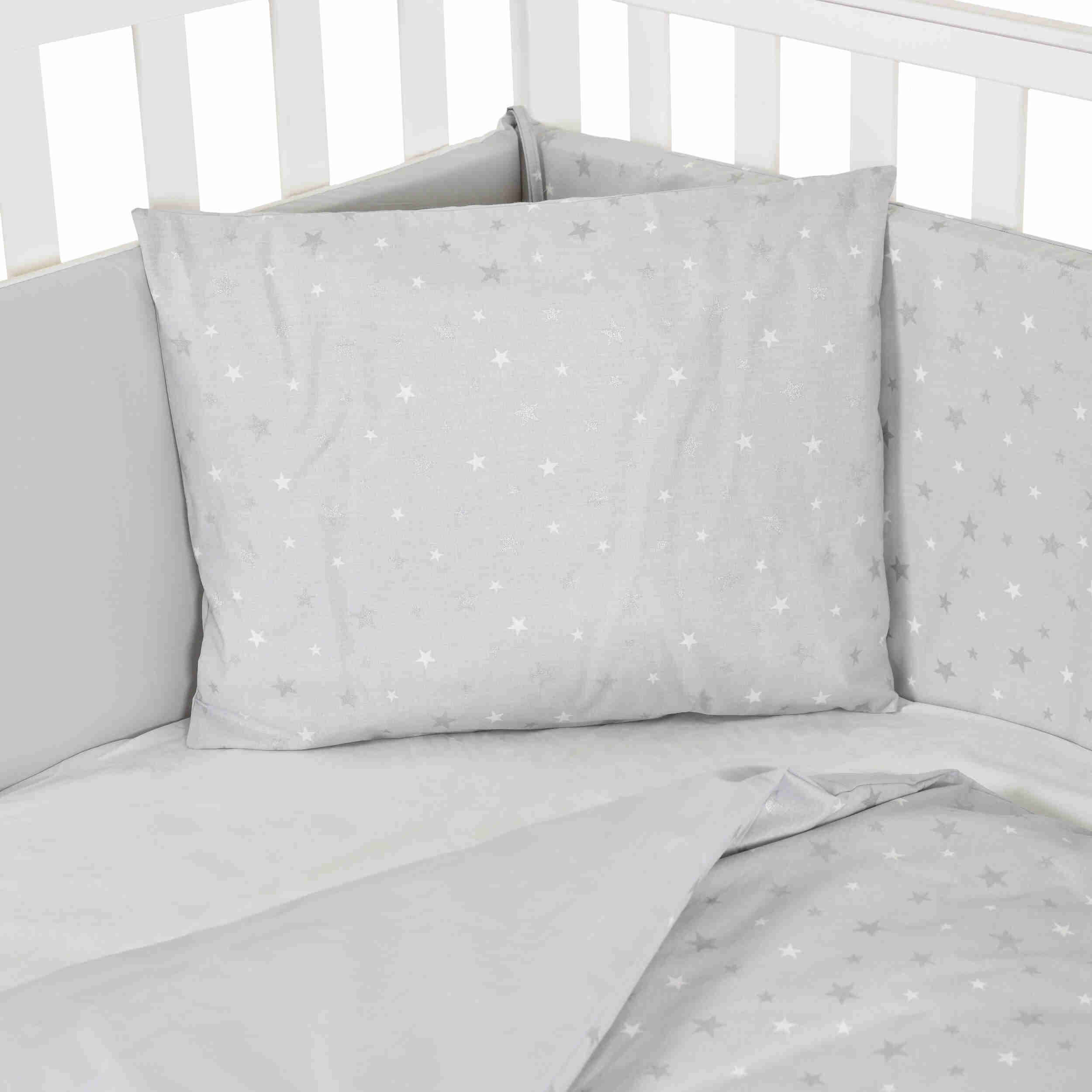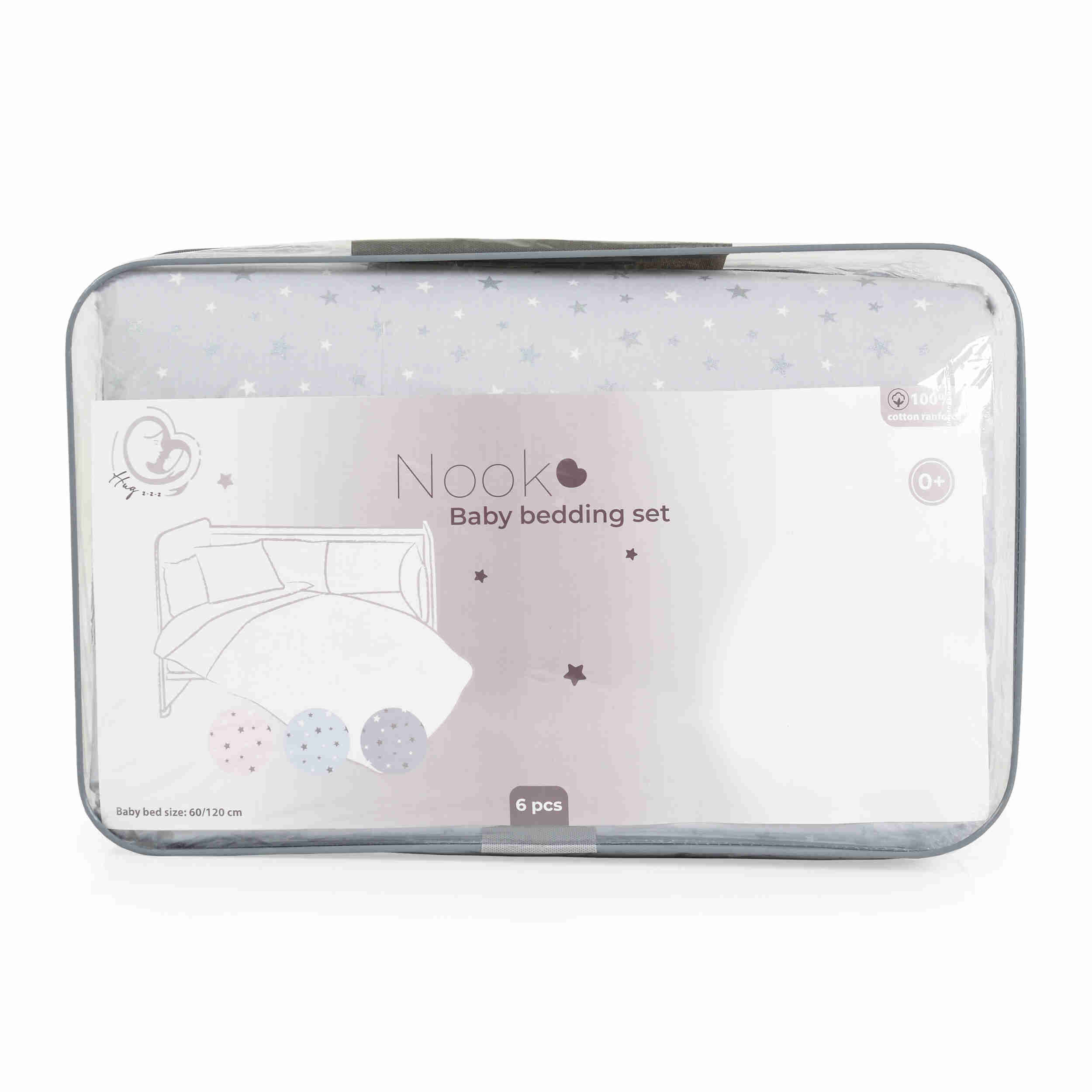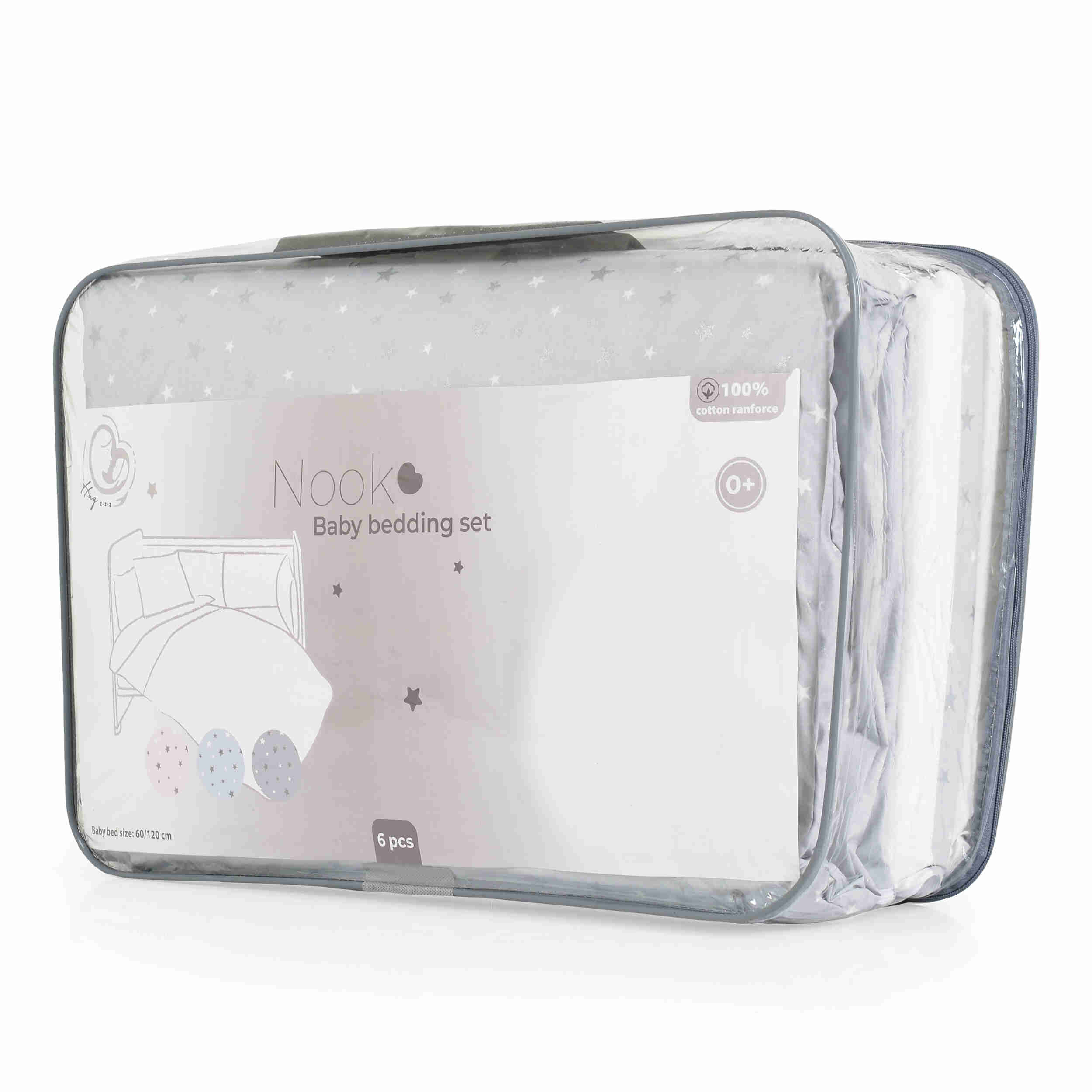 Спален комплект 6части NOOK Grey stars 120/60 е идеалното решение за родителите, които търсят комфорт и стил за своето бебе. Този бебешки спален комплект съчетава висококачествени материали, елегантен дизайн и функционалност, което го прави перфектен избор за всяка бебешка стая. Голям избор на детски спални комплекти.