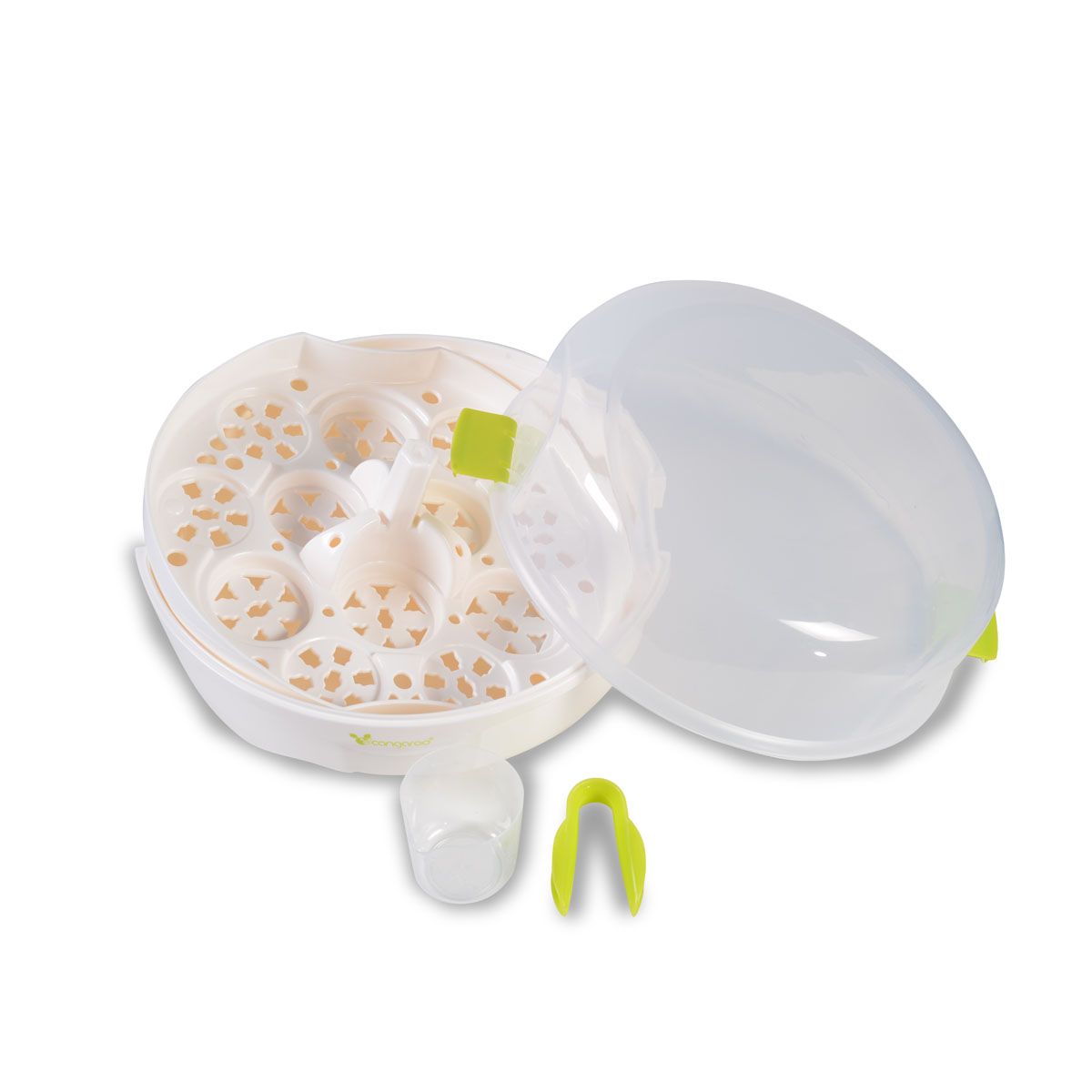 Лесна употреба: Просто добавете вода, поставете шишетата и аксесоарите, затворете капака и поставете стерилизатора в микровълновата печка.