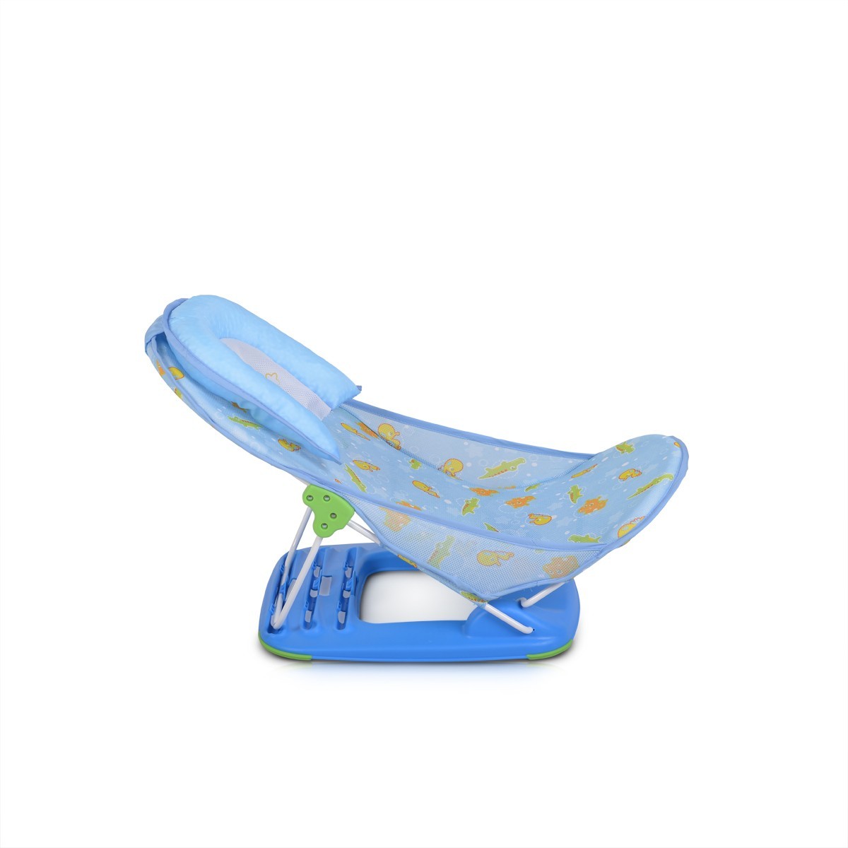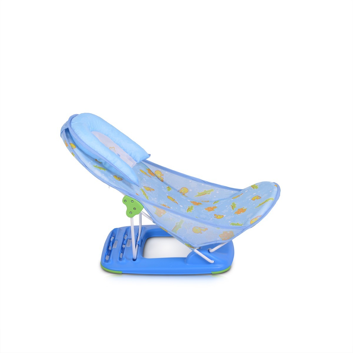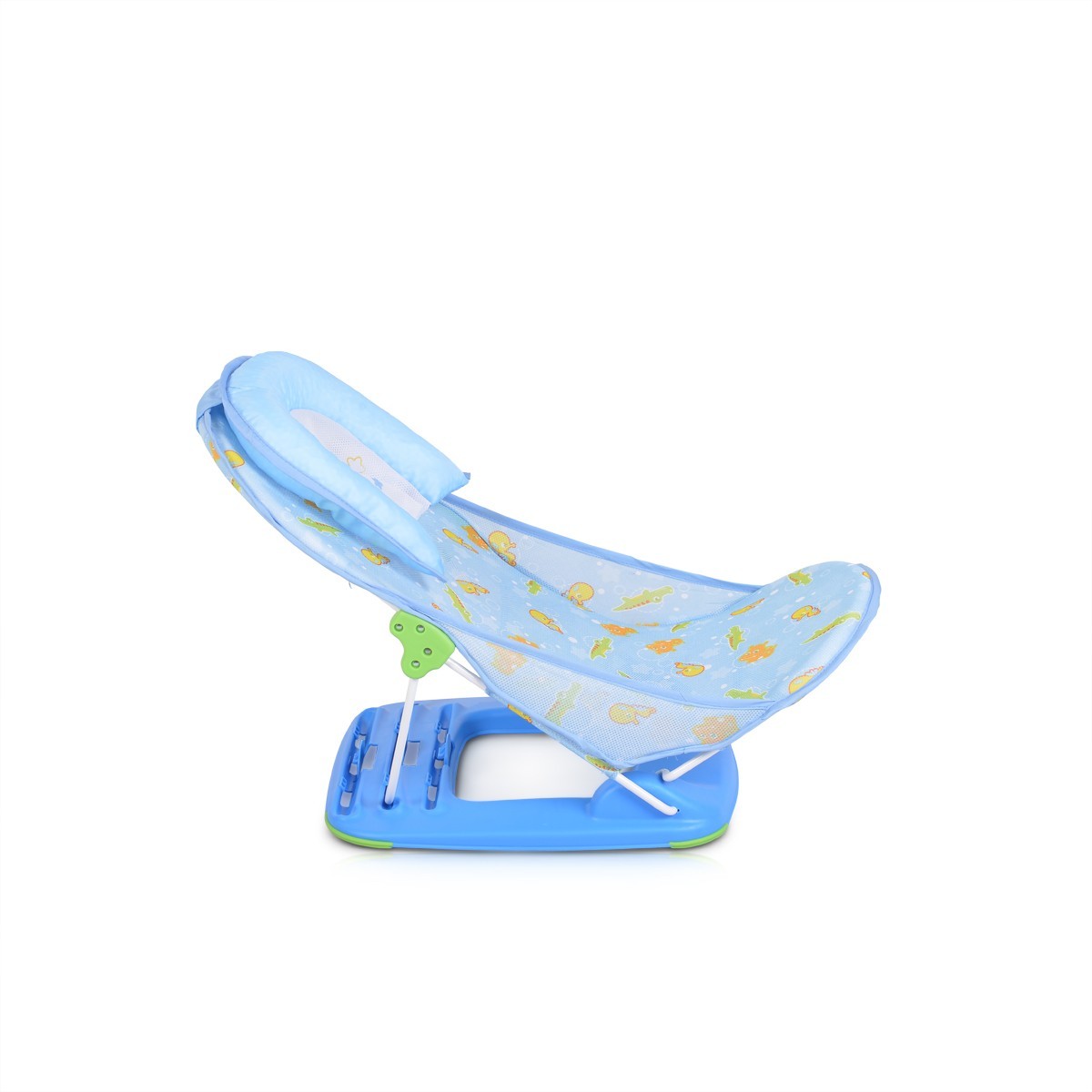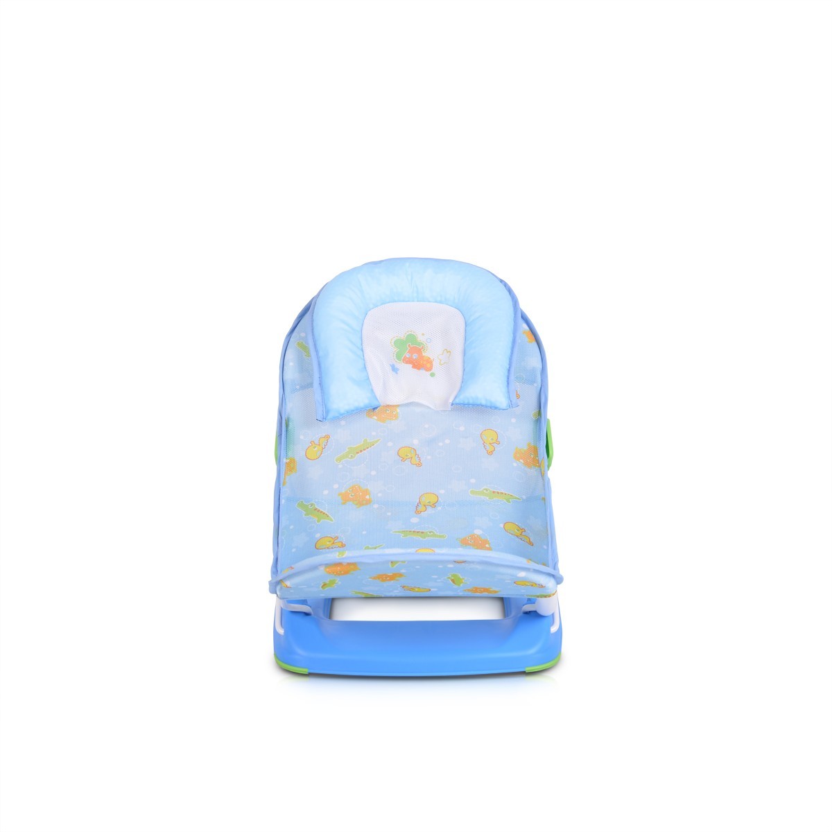 Тази помощна поставка е проектирана да се поставя във вана или мивка, като осигурява стабилна и удобна основа за къпане на бебето. Тя разполага с две позиции на облегалката, които позволяват регулиране според нуждите на бебето. Основата е стабилна и има гумирани ъгълчета, които предотвратяват плъзгането и осигуряват допълнителна безопасност.
