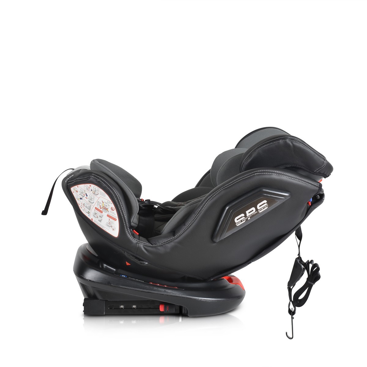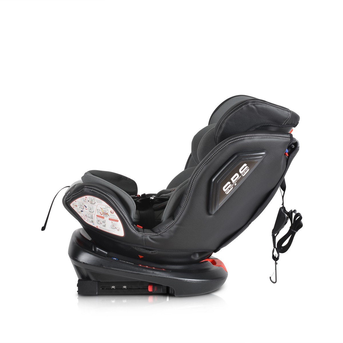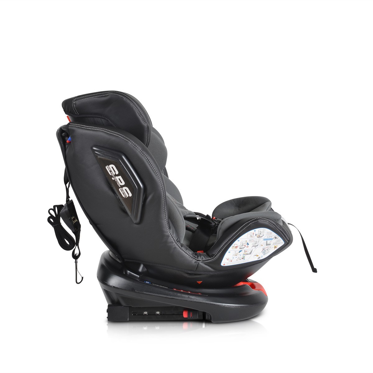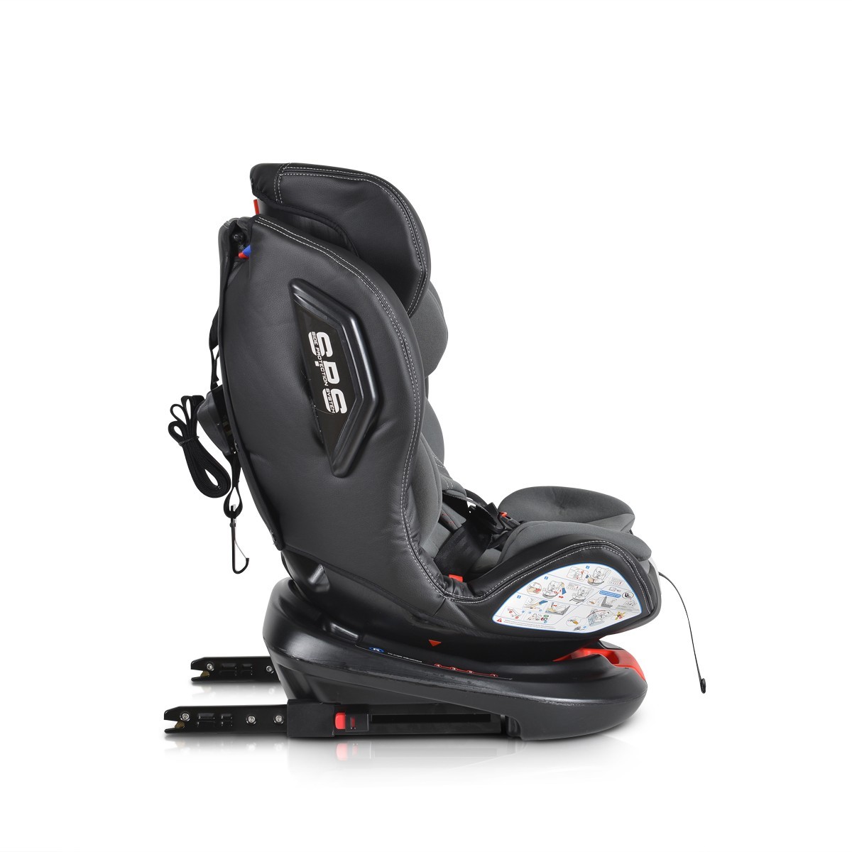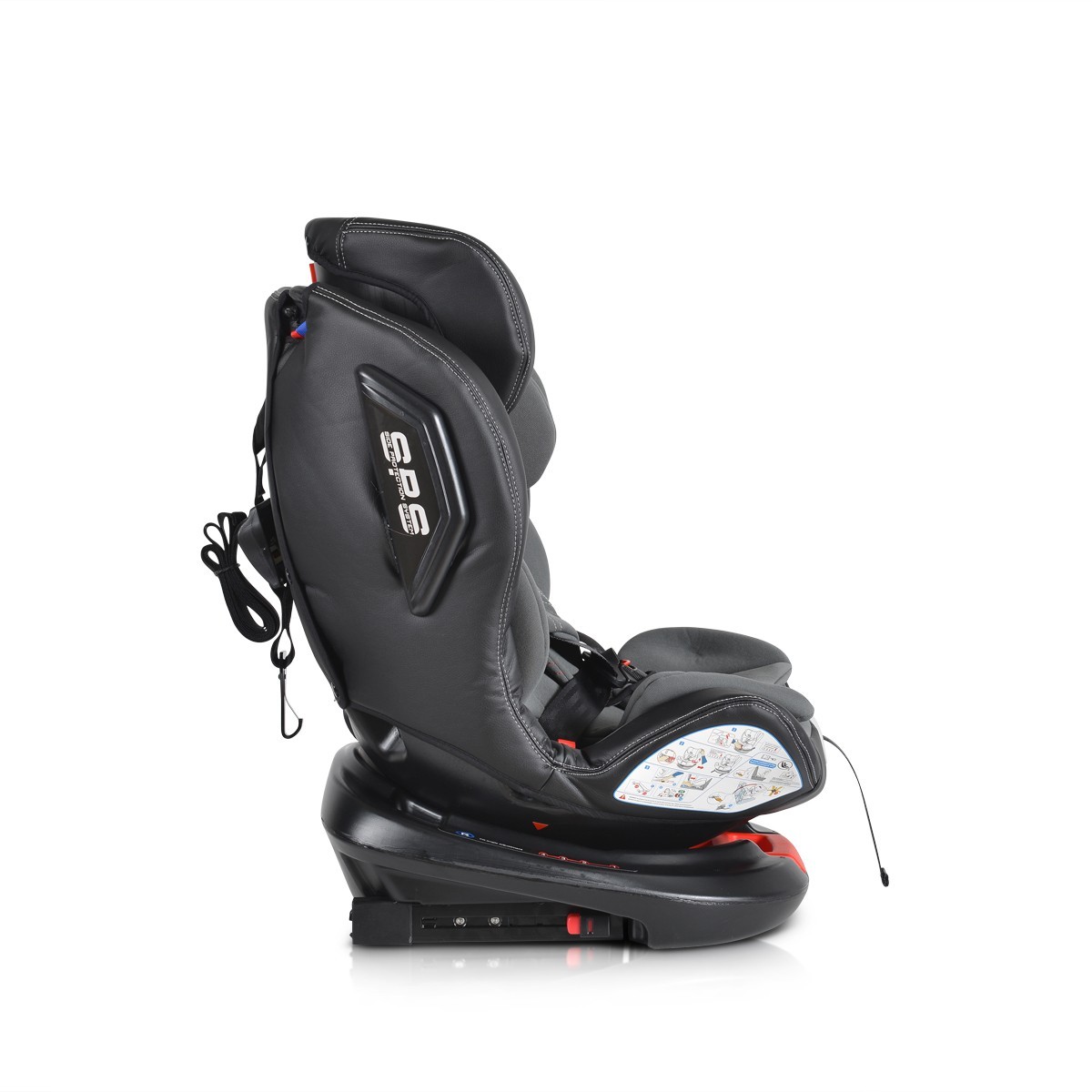 Столчето е снабдено с ISOFIX система, която осигурява по-голяма стабилност и безопасност. Двойната странична предпазна система гарантира защита при странични удари.