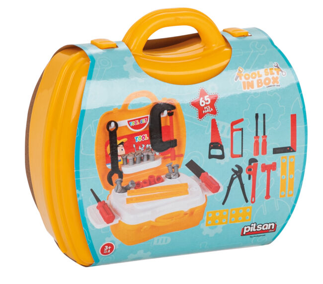 Разнообразие от инструменти: Комплектът включва различни инструменти като чук, отвертка, гаечен ключ, клещи и други, които позволяват на децата да се запознаят с основните строителни инструменти.