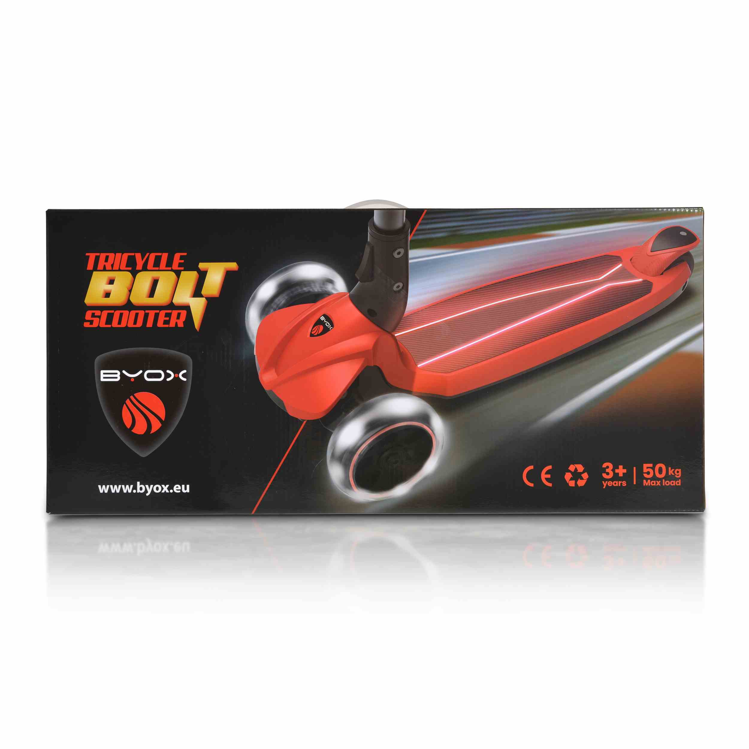 Тротинетката Byox – Bolt е проектирана така, че да осигури максимален комфорт и стабилност на детето по време на каране. Тя е подходяща за деца на възраст над 3 години и може да поддържа тегло до 50 кг.