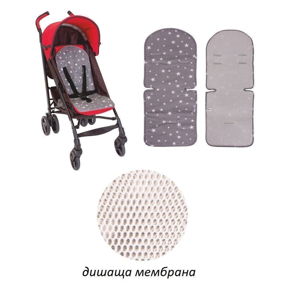 Комфорт: Меката структура на подложката осигурява спокойно и комфортно пътуване за вашето дете. Има удобна възглавничка, която предпазва от хлъзгане и осигурява допълнителен комфорт.