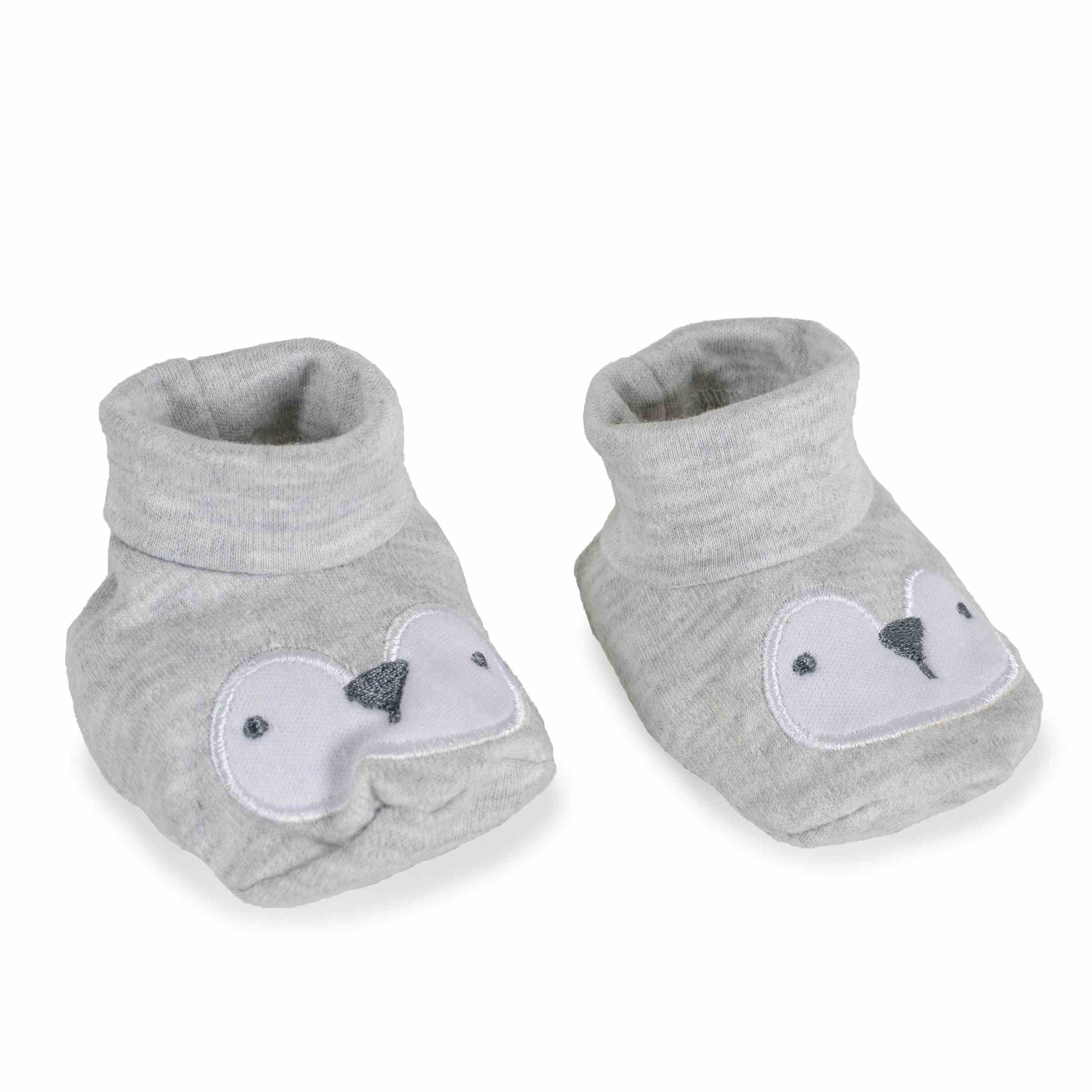 Шапка и терлички Rey сив е идеален за новородени и малки деца. Този комплект детска шапка и терлички включва шапчица и терлички, които са изработени от мека и висококачествена материя, осигуряваща комфорт и топлина на бебето.