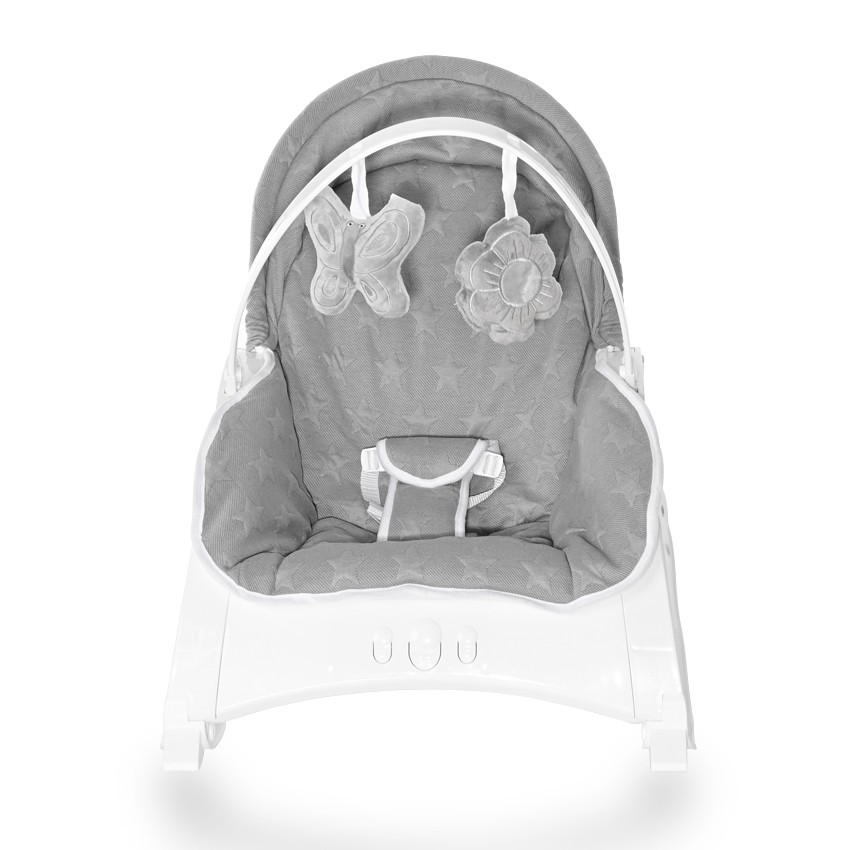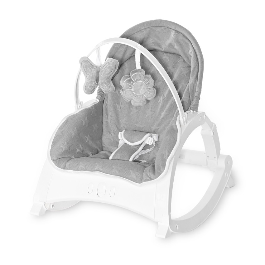 Шезлонг ALEX сиви звезди с табла е многофункционален продукт, който предлага комфорт и забавление за вашето бебе. Със своята иновативна конструкция и множество функции, той е идеален за родители, които търсят универсално решение за отдих и игра на своето дете.