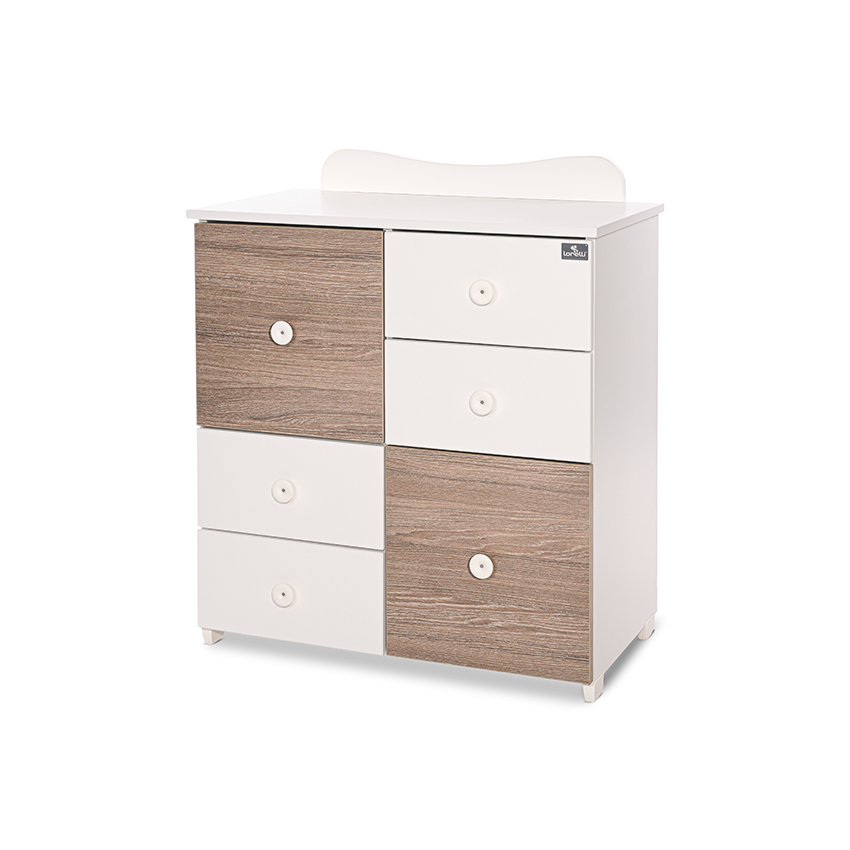 Конструкция: Скринът разполага с 4 просторни чекмеджета и 2 шкафчета с вътрешни рафтове, което осигурява достатъчно място за съхранение.