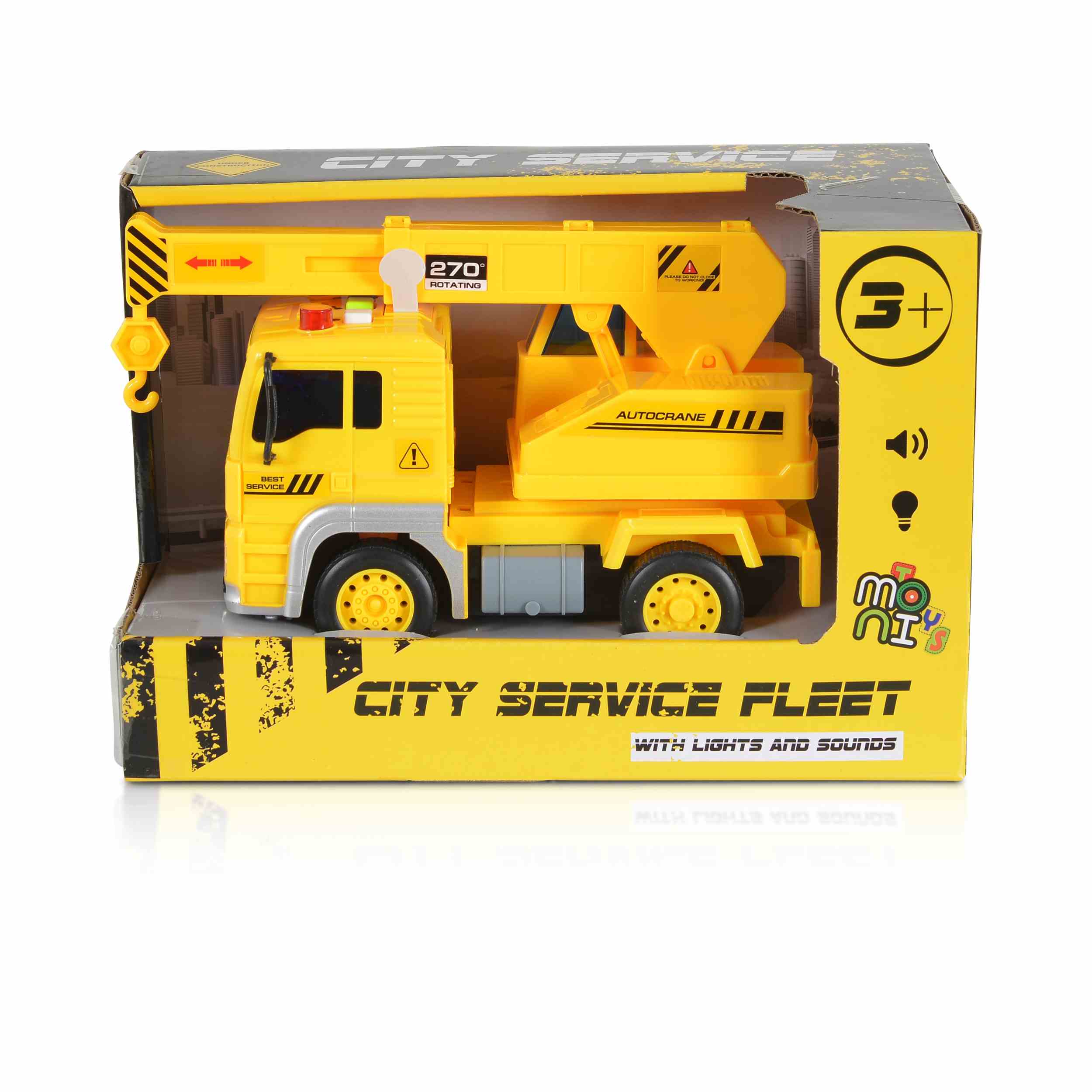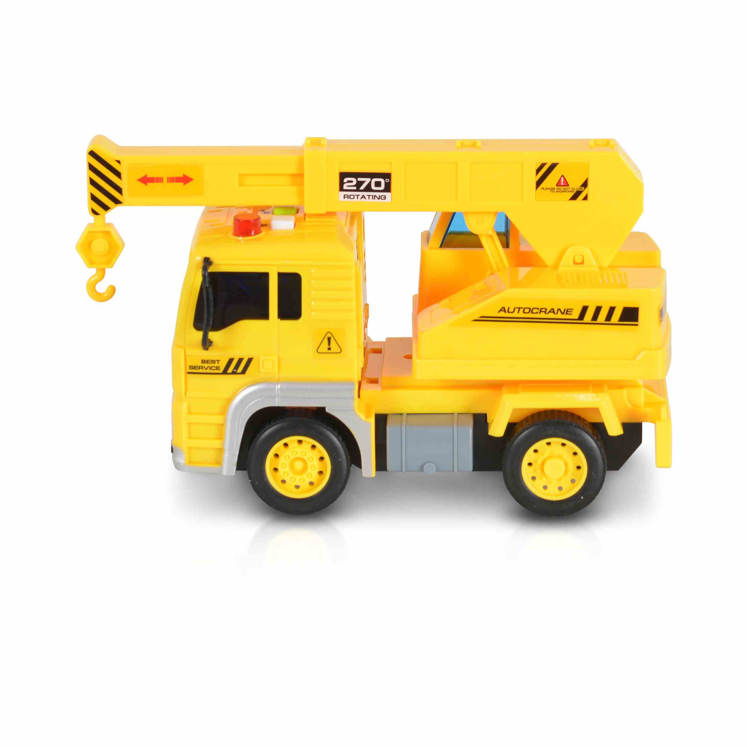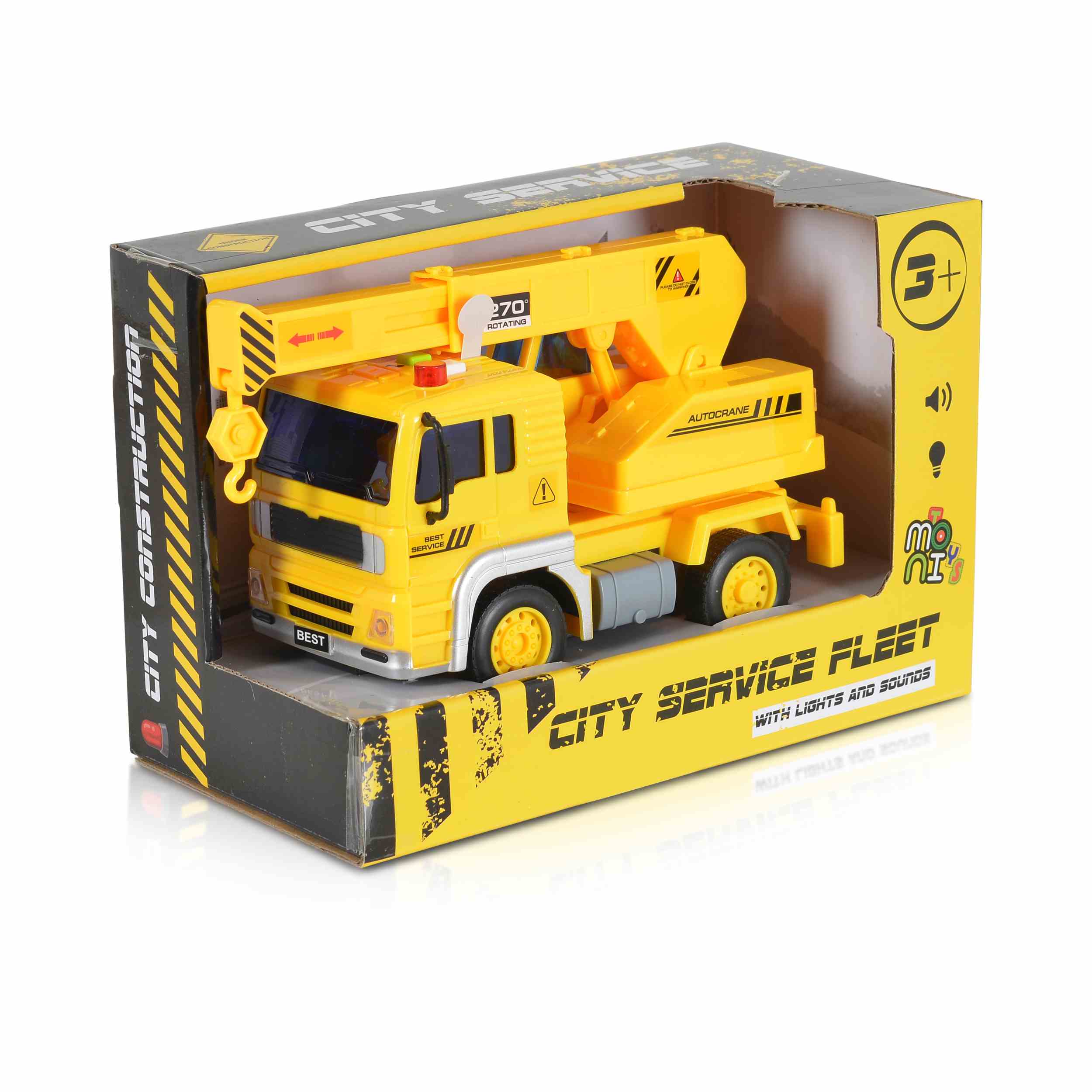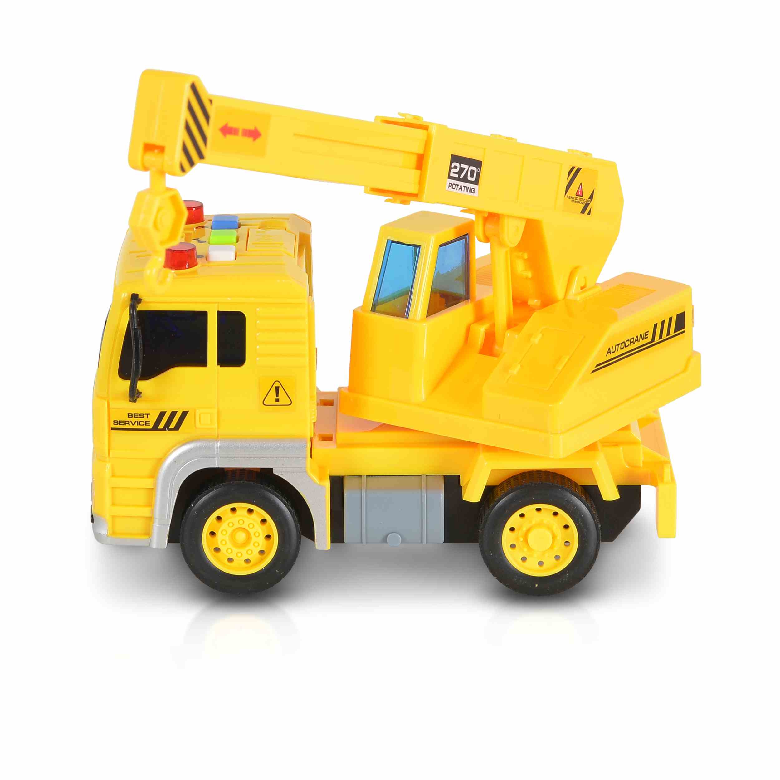 Камионът с кран „1:20 със звук и светлини“ е проектиран да привлича вниманието на децата с ярките си цветове и реалистичен дизайн. Той включва светлинни и звукови ефекти, които правят играта още по-забавна и реалистична. Играчката е подходяща за деца на възраст над 3 години и помага за развитието на фината моторика, координацията и креативността.