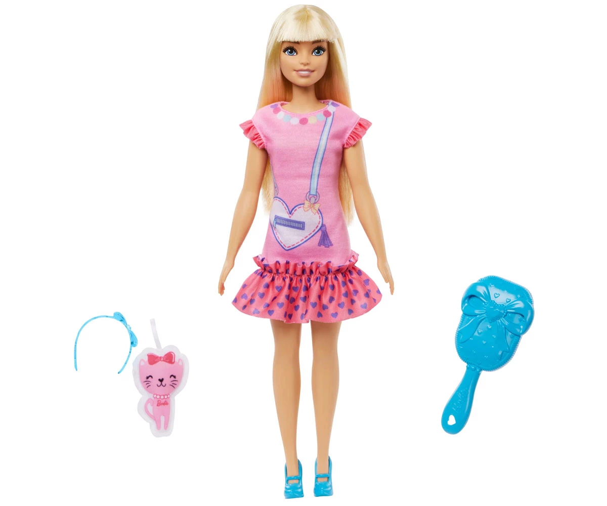Моята първа Барби Barbie руса кукла с котенце е част от колекцията My First Barbie™. Специално създадена за деца в предучилищна възраст. Тази очарователна кукла е проектирана да бъде по-голяма и лесна за обличане. С позициониращи и меки на допир тела, което я прави идеална за малки ръчички.