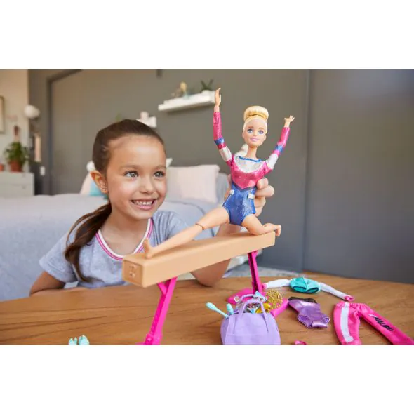 BARBIE кукла ГИМНАСТИЧКА Комплект за игра CAREERS е идеалният начин за децата да се забавляват, представяйки си кариера като гимнастичка!