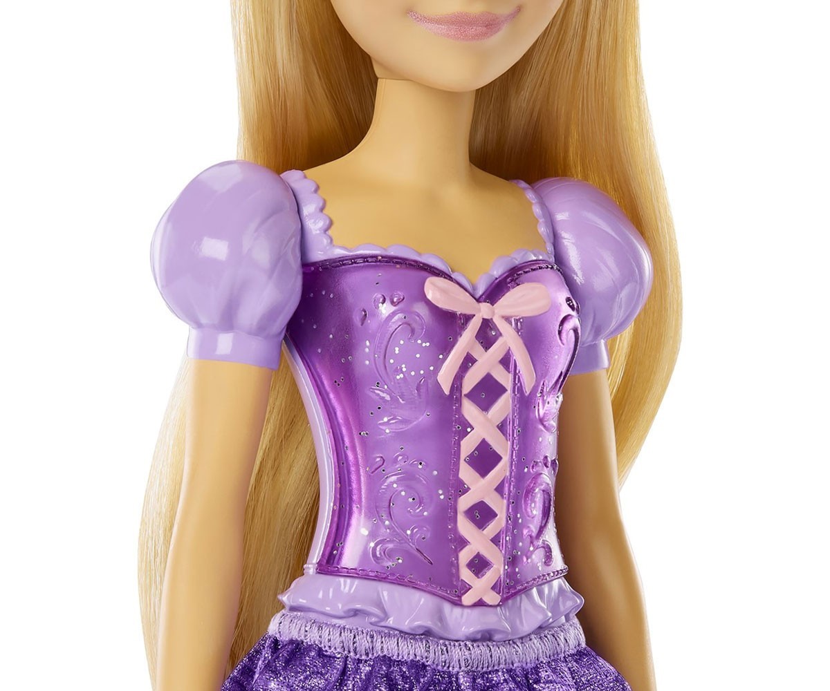Disney Princess кукла Рапунцел е вдъхновена от жизнената и креативна принцеса от анимационния филм на Disney “Tangled”. Тази модна кукла е представена в искрящо облекло и аксесоари, които включват обувки и тиара. В характерния си вид от филма, куклата Рапунцел е готова за всякакви приключения.