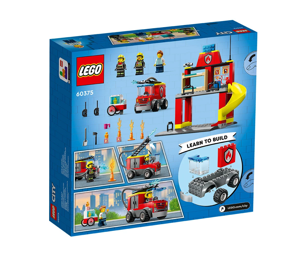 LEGO City Fire 60375 – Пожарна команда и пожарникарски камион е перфектният подарък за всеки млад фен на LEGO и приключенията. За всеки който обича да строи и да създава свои собствени героични истории. С този комплект, всяко дете може да се почувства като истински пожарникар. Да развива своята увереност и да създава незабравими спомени.