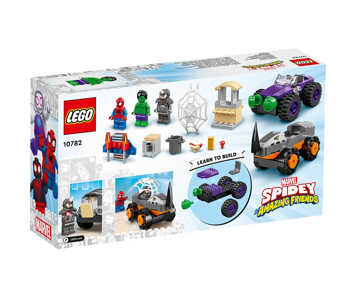 LEGO Spidey 10782 – Хълк срещу Носорога – схватка с камиони е перфектен комплект за малките супергерои, които искат да се потопят в света на Marvel и да се забавляват с любимите си герои.